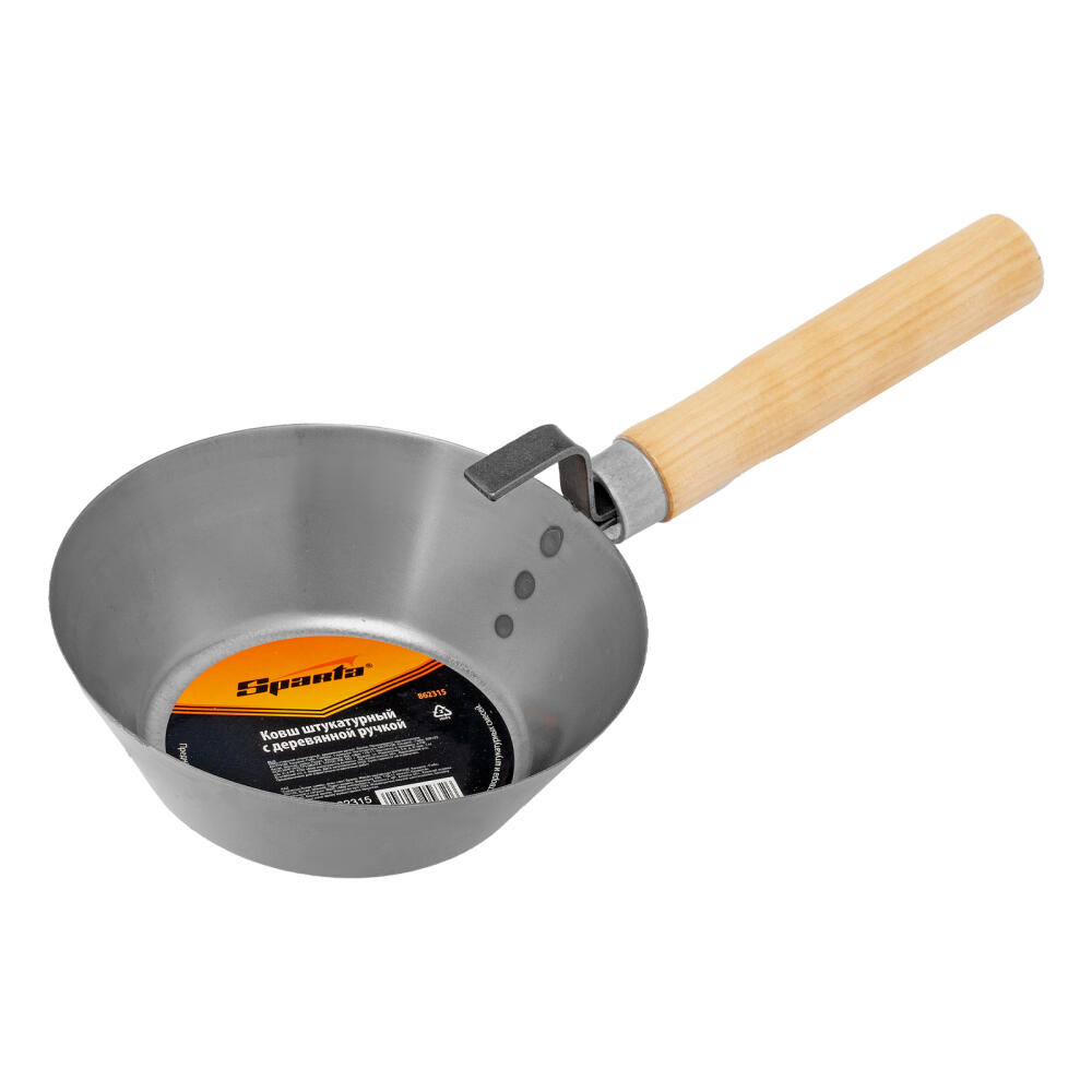 Стальной ковш Sparta 862315 с рабочей частью в форме усеченного конуса диаметром 160 мм и деревянной ручкой предназначен для работы со штукатурными смесями. Позволяет быстро набрасывать раствор, облегчая проведение строительных и ремонтных работ. Инструмент не требует особых навыков, работы можно проводить без использования специального инструмента.