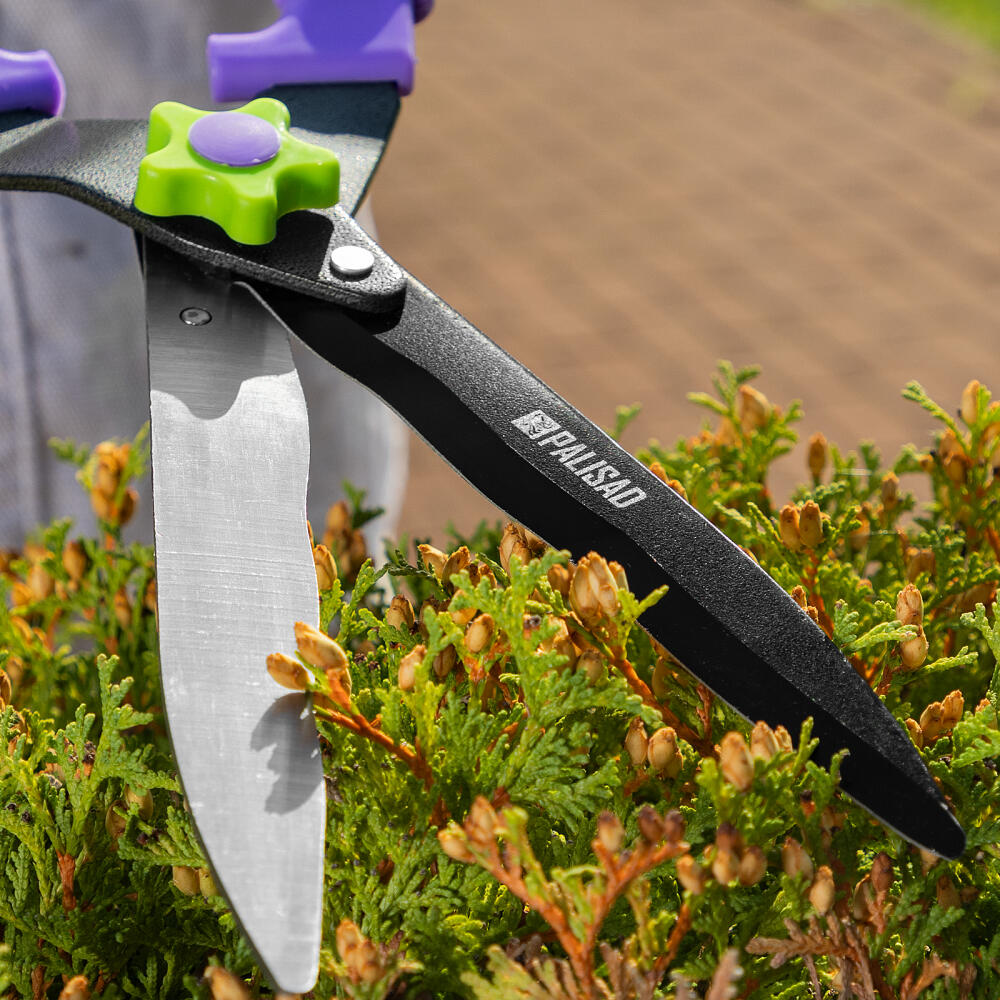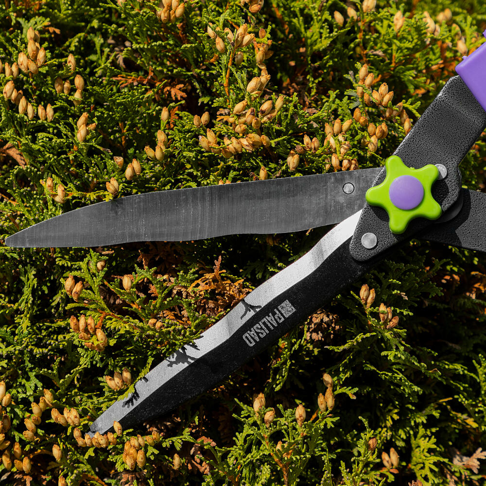 Кусторез Palisad 60836 длиной 560 мм, с волнистыми лезвиями и двухкомпонентными рукоятками, позволяет провести омолаживающую обрезку молодых побегов толщиной до 10 мм. С его помощью можно ухаживать за кустарниками и живой изгородью. Тефлоновое покрытие основного лезвия обеспечивает легкость реза. Волнистые кромки надежно удерживают ветки, поэтому инструмент подходит для подравнивания побегов с гладкой корой.