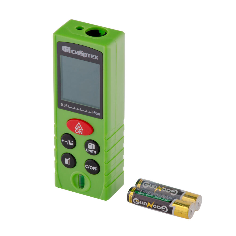 Лазерный дальномер Сибртех РМ-60 38011 с пузырьковым уровнем отличается высокой дальностью измерения до 60 м и помогает определять длину, объем и площадь помещения, а также складывать и вычитать полученные результаты. Он применяется при проведении строительных и отделочных работ: укладке плитки, установке окон, дверей, напольных покрытий, натяжных потолков. Будет полезен также для проведения дорожных и геодезических работ.