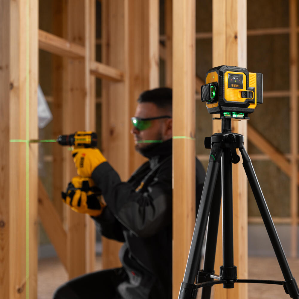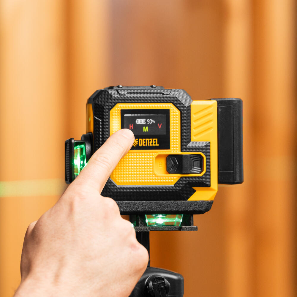 Мультипризменный лазерный уровень Denzel DLV-360-3T 350805 поставляется со штативом, работает от аккумулятора Li-Ion емкостью 2,4 А·ч и проецирует горизонтальную и 2 вертикальные линии на расстояние до 30 м при помощи зеленых лучей длиной 520 нм. С его помощью можно нанести разметку и выровнять предметы относительно друг друга и земли с точностью до 0,3 мм/м. Угол развертки составляет 360°, что повышает удобство и эффективность работы. Прибор незаменим во время проведения строительных, ремонтных, отделочных работ, обустройства интерьера.