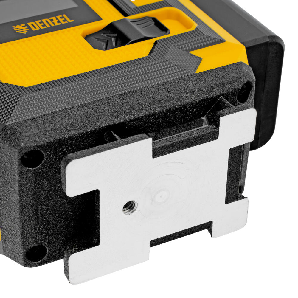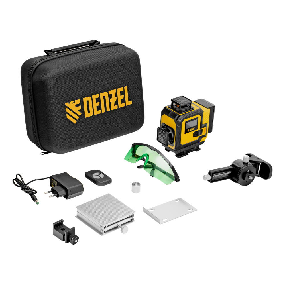 Мультипризменный лазерный уровень Denzel DLV-360-4C 35081 поставляется в кейсе, работает от аккумулятора Li-Ion емкостью 2,4 А·ч и проецирует 2 горизонтальные и 2 вертикальные линии на расстояние до 30 м при помощи зеленых лучей длиной 520 нм. С его помощью можно нанести разметку и выровнять предметы относительно друг друга и земли с точностью до 0,3 мм/м. Угол развертки составляет 360°, что повышает удобство и эффективность работы. Прибор незаменим во время проведения строительных, ремонтных, отделочных работ, обустройства интерьера.