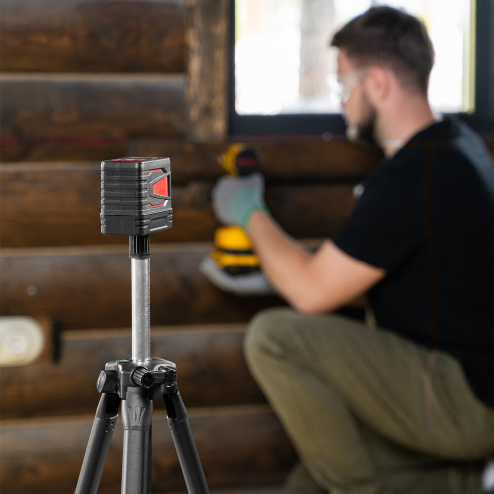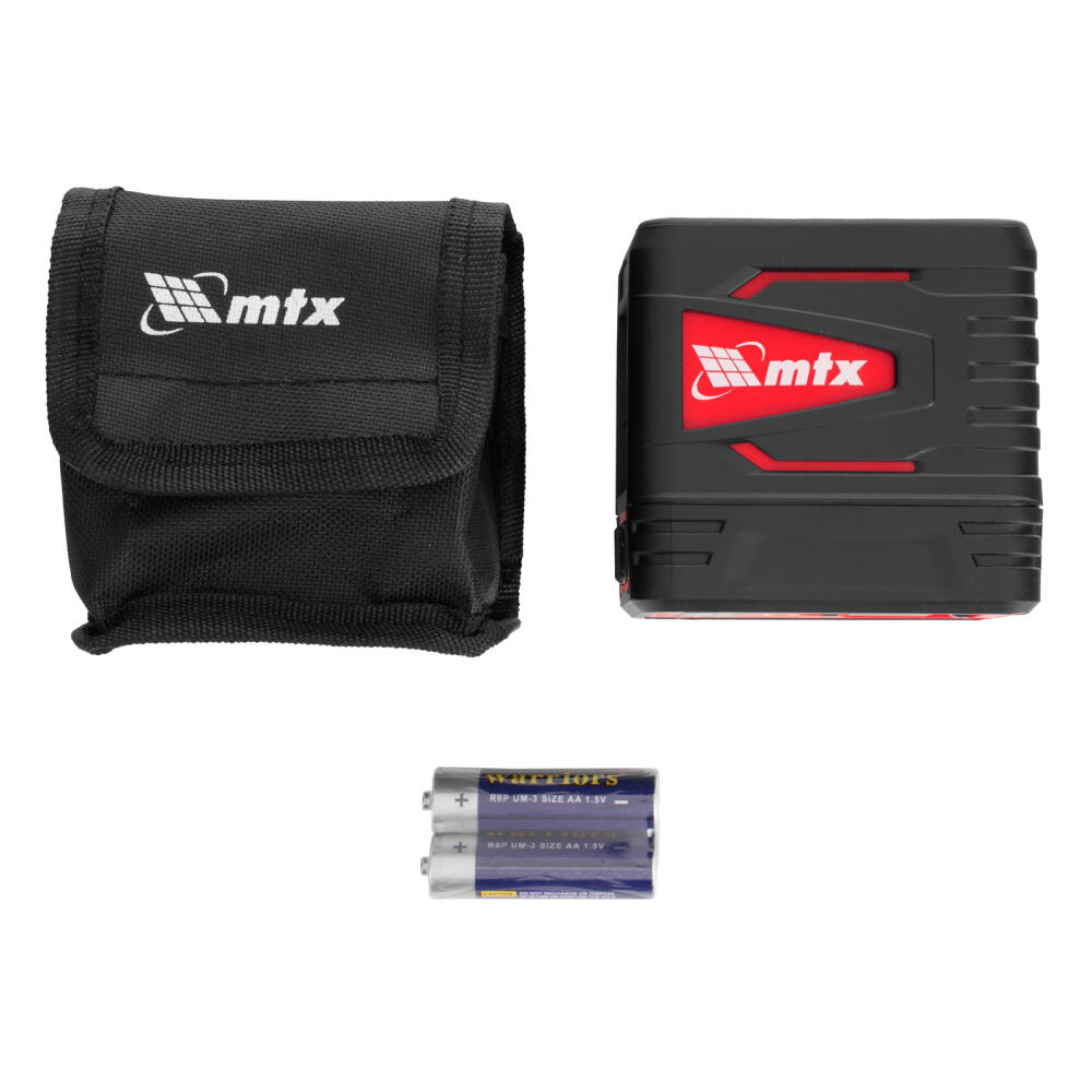 Лазерный уровень MTX QBC RED Basic SET 35010 с резьбой 1/4″ работает от батареек AA и проецирует горизонтальную и вертикальную линии на расстояние до 10 м при помощи красных лучей длиной 635 нм. Предназначен для проведения разметки поверхностей и выравнивания предметов при проведении строительных и ремонтных работ. С его помощью можно выполнить внутреннюю отделку помещений, смонтировать подвесные потолки, установить розетки и выключатели, шкафы и стеллажи, повесить полки и картины и т.д. Погрешность составляет ±0,3 мм/м, что обеспечивает высокую точность разметки. Прибор можно использовать в помещении и на улице.