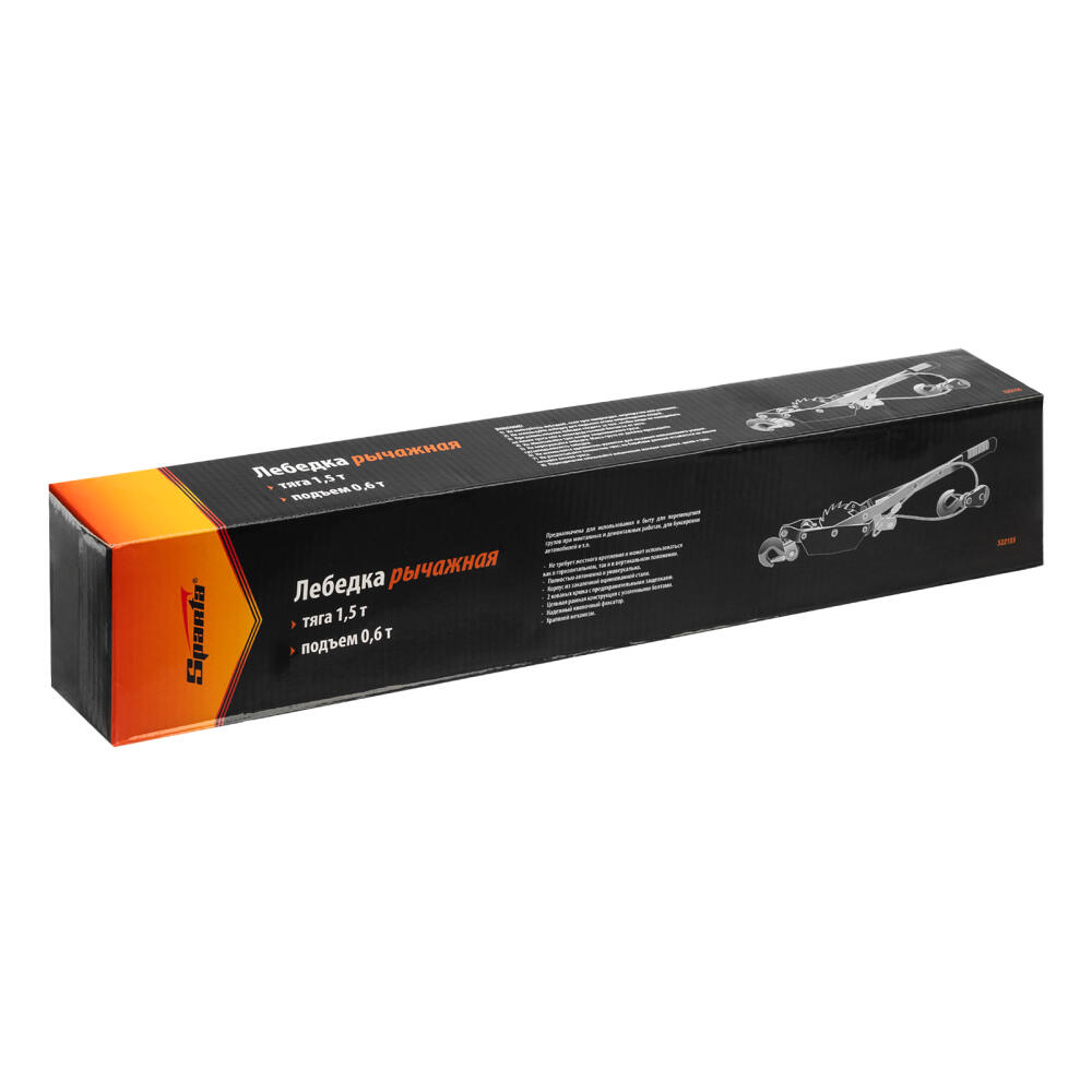 Рычажная лебедка Sparta 522155, тяга - 1,5 т, подъем - 0,6 т, с одинарным храповым колесом, используется для поднятия и передвижения грузов в вертикальной, горизонтальной и наклонной плоскости. Это незаменимое устройство для автомобилистов, используемое при необходимости эвакуации авто. Также она пригодится в быту в процессе погрузочных работ. Рычажный механизм не требует больших физических усилий от оператора.
