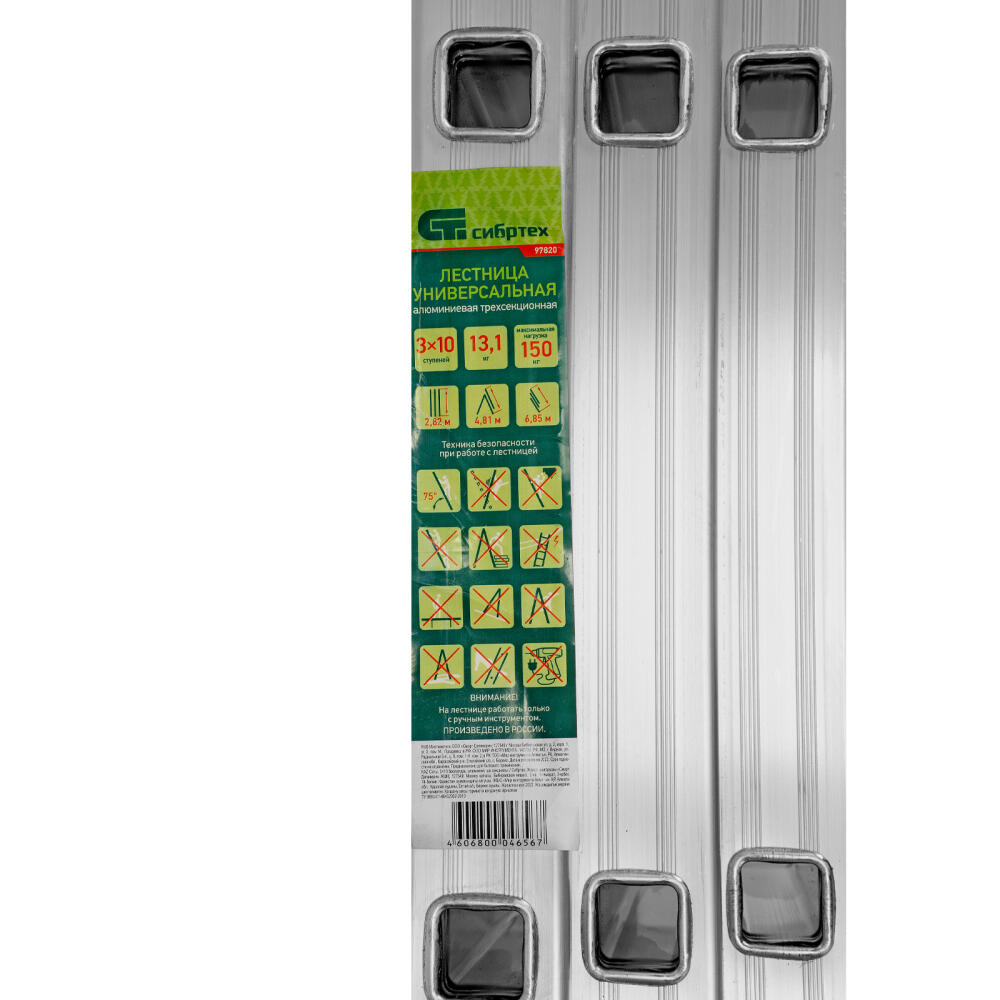 Алюминиевая трехсекционная лестница Сибртех 97820 состоит из 3 секций по 10 ступеней каждая. Она предназначена для использования преимущественно на открытом воздухе и в помещениях с высокими потолками, подойдет также для работников коммунальных служб и строителей. Лестница поможет провести отделочные, монтажные работы, будет полезна на складе.