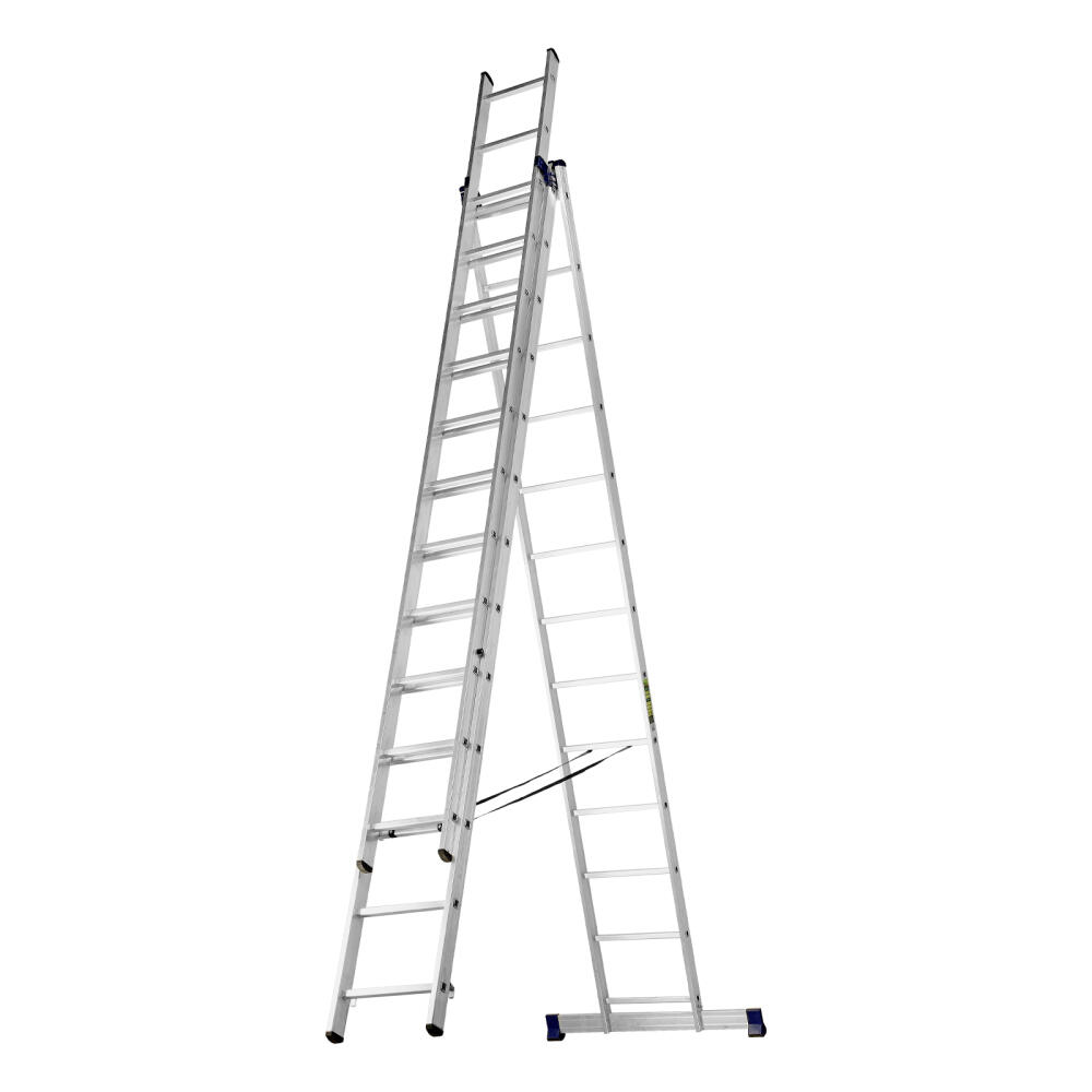 Алюминиевая трехсекционная лестница Сибртех 97823 состоит из 3 секций по 13 ступеней каждая. Она предназначена для использования преимущественно на открытом воздухе и в помещениях с высокими потолками, подойдет также для работников коммунальных служб и строителей. Лестница поможет провести отделочные, монтажные работы, будет полезна на складе.