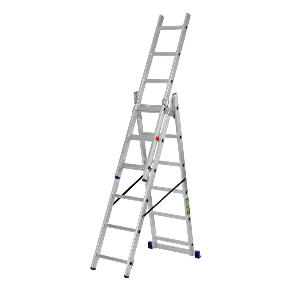 Алюминиевая трехсекционная лестница Сибртех 97816 состоит из 3 секций по 6 ступеней каждая. Она предназначена для использования преимущественно на открытом воздухе и в помещениях с высокими потолками, подойдет также для работников коммунальных служб и строителей. Лестница поможет провести отделочные, монтажные работы, будет полезна на складе.