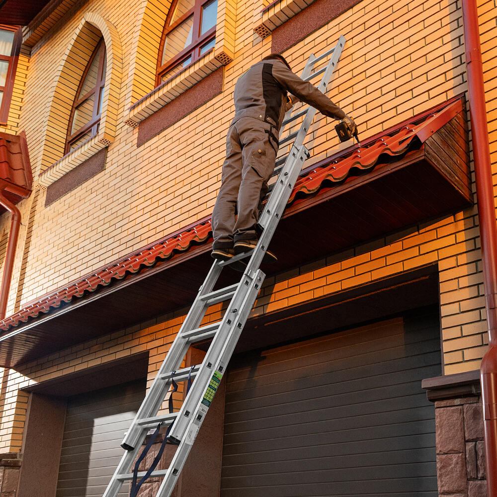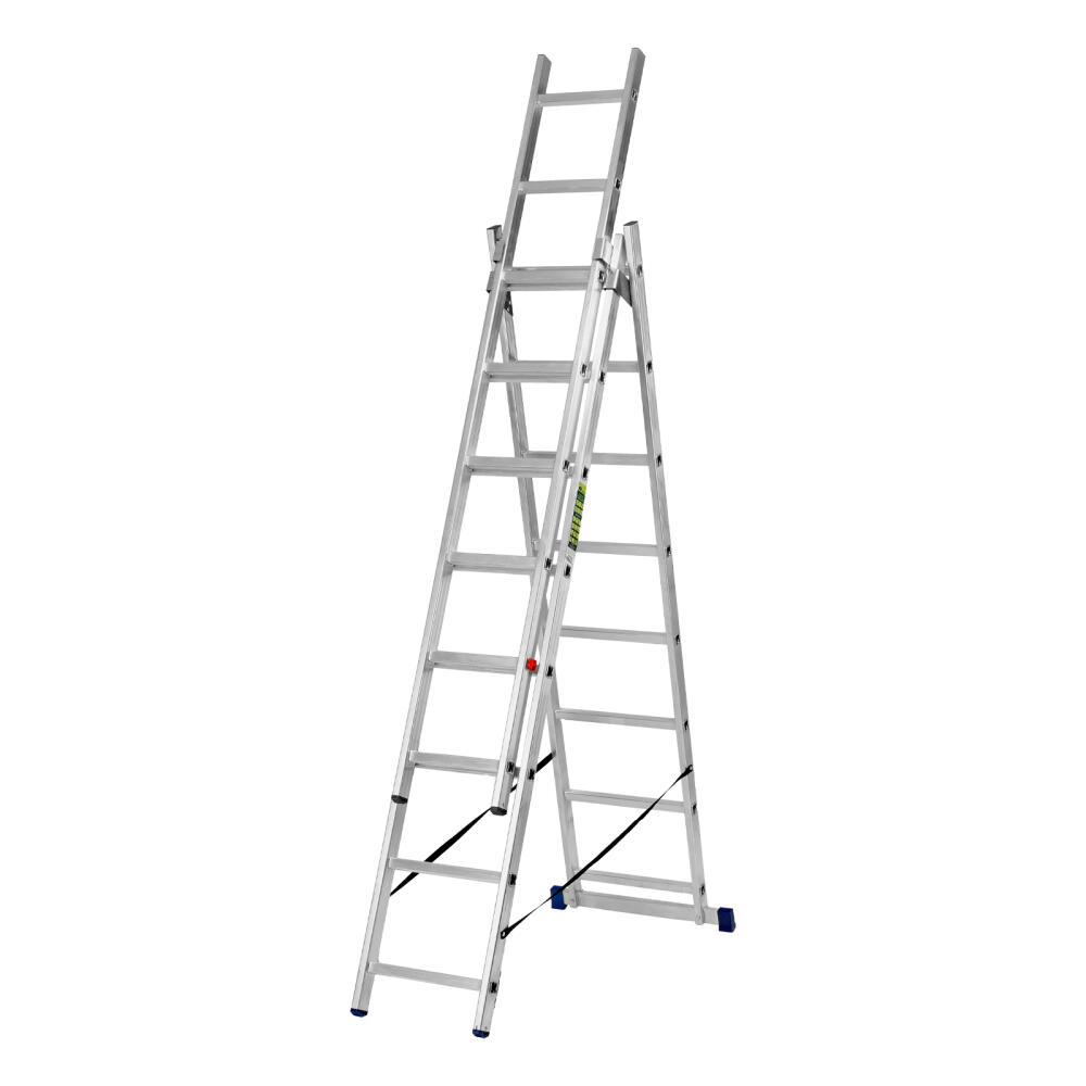 Алюминиевая трехсекционная лестница Сибртех 97818 состоит из 3 секций по 8 ступеней каждая. Она предназначена для использования преимущественно на открытом воздухе и в помещениях с высокими потолками, подойдет также для работников коммунальных служб и строителей. Лестница поможет провести отделочные, монтажные работы, будет полезна на складе.