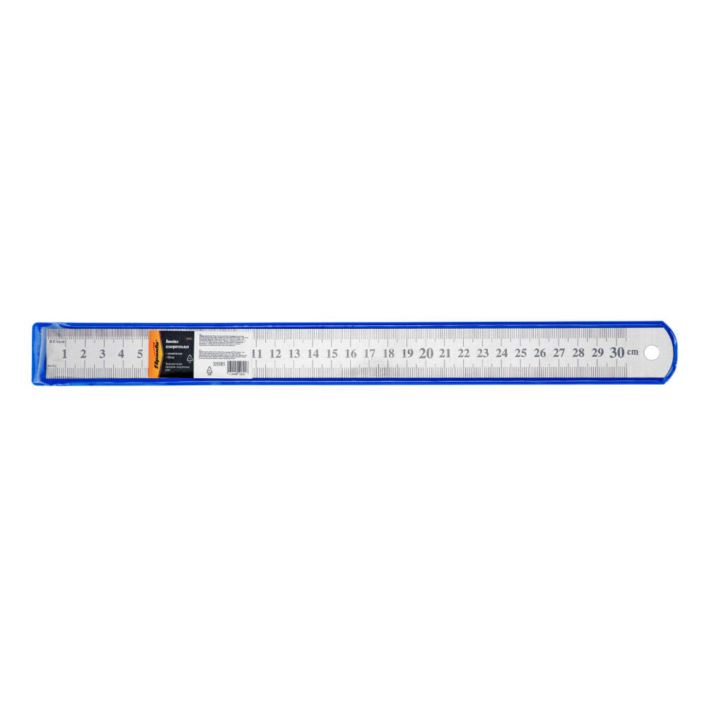 Металлическая измерительная линейка Sparta 305065 с пределом измерения 300 мм предназначена для определения размеров деталей, разметки поверхностей и начертания прямых линий. Используется преимущественно во время строительства и ремонта, проектирования, занятий творчеством, в металлообработке, будет полезна дома и в гараже.