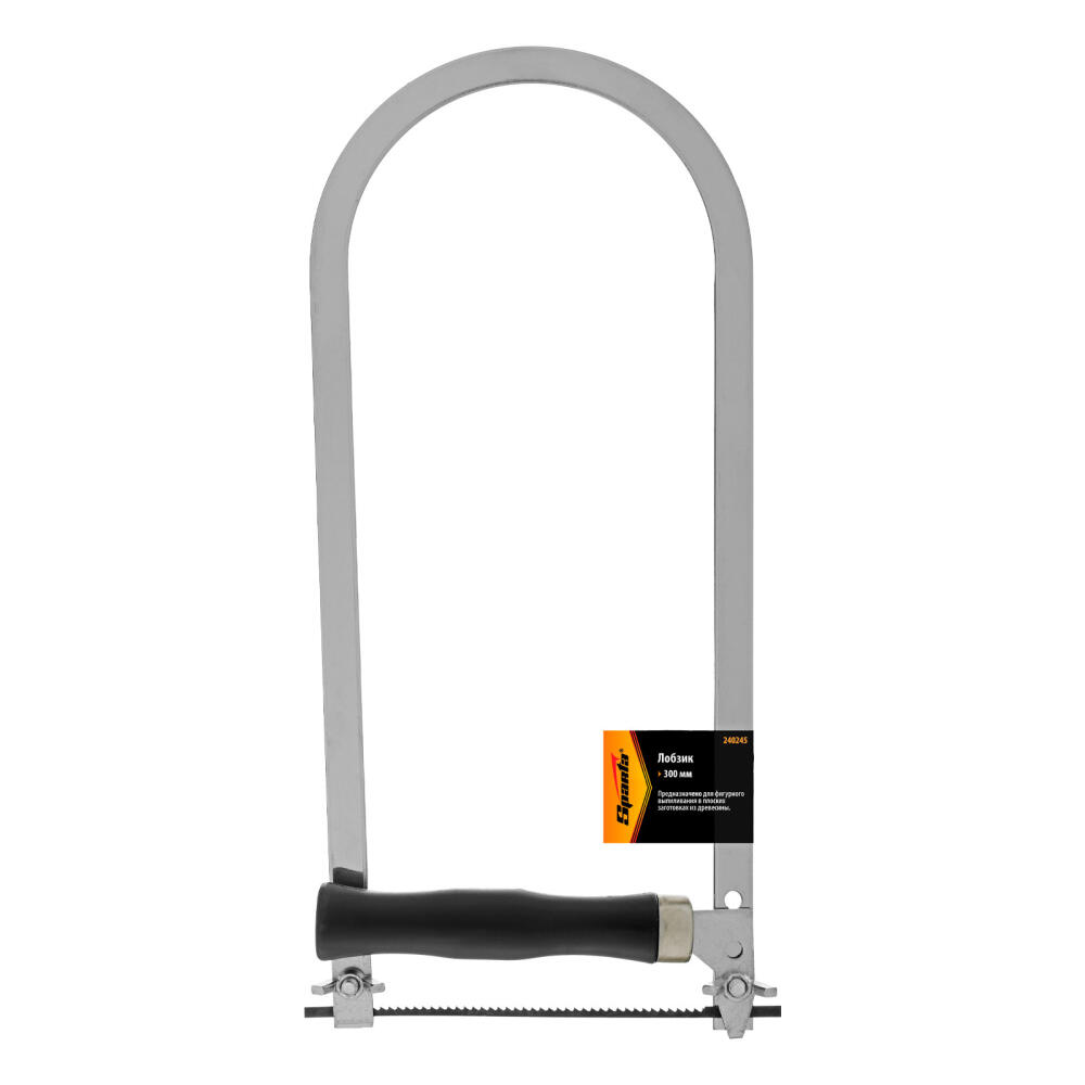Лобзик Sparta 240245 длиной 300 мм предназначен для выполнения прямо- и криволинейных распилов в фанерных или пластиковых заготовках. Прочная и упругая стальная рама надежно удерживает полотно длиной 120 мм, обеспечивая высокое качество работ. Лобзик используется для ремонта и отделки, а также для художественной резьбы по дереву.