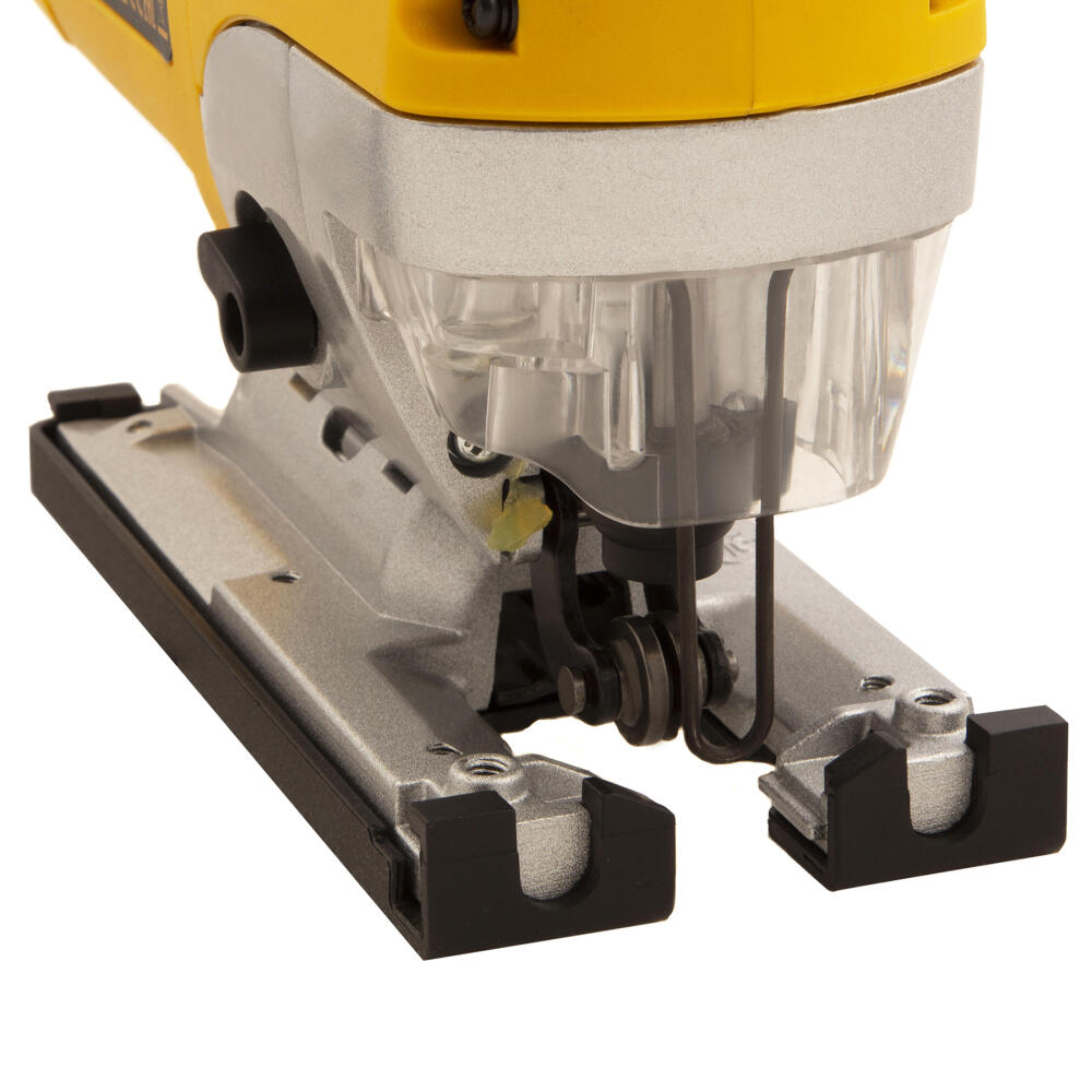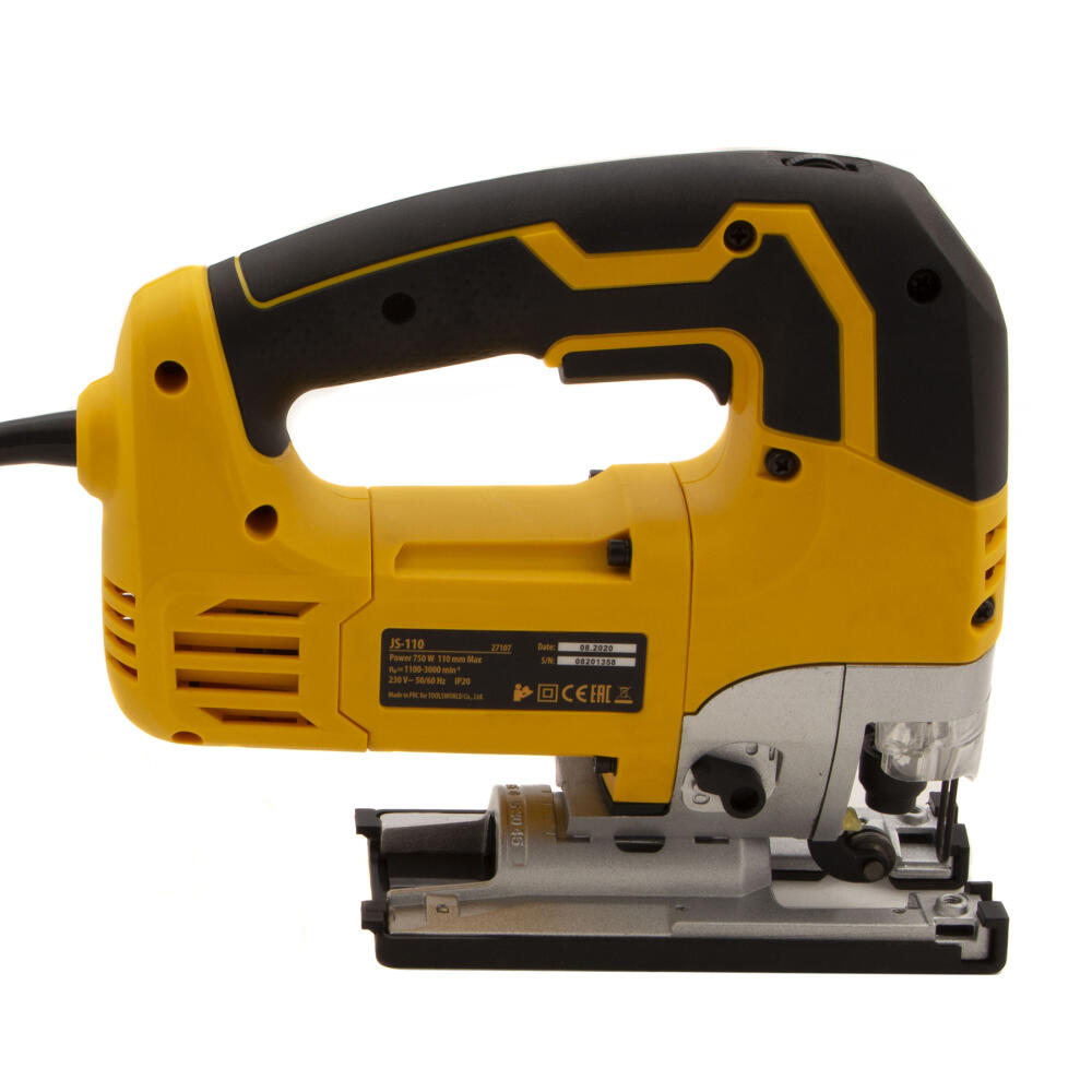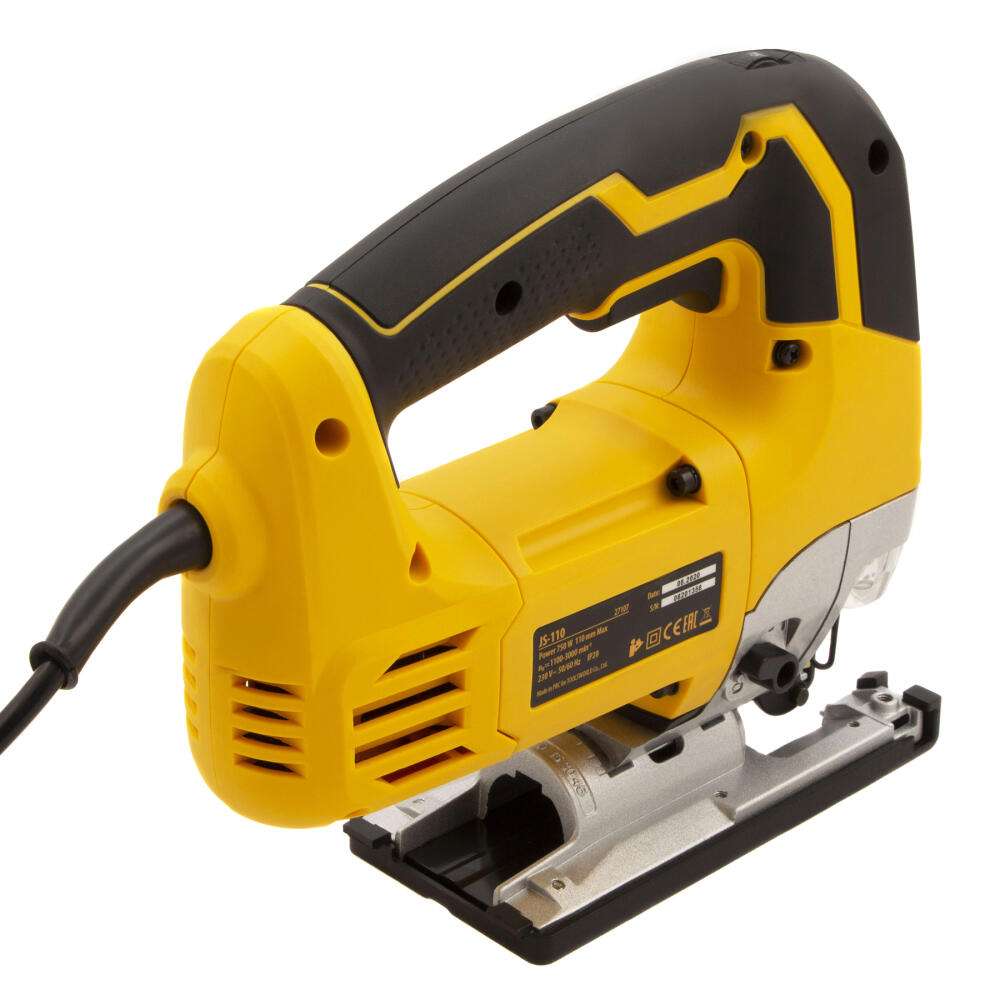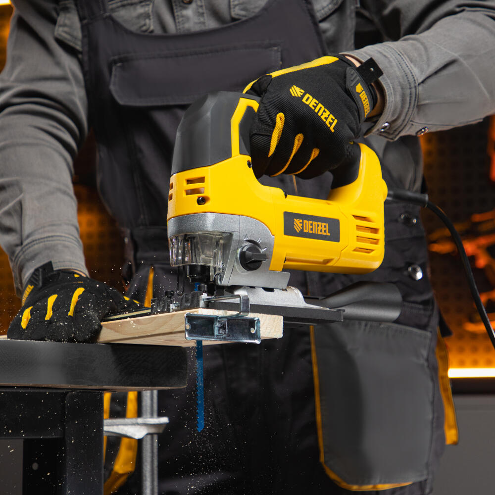 Электрический лобзик Denzel JS-110 27107 мощностью 750 Вт предназначен для прямого и фигурного реза листовых материалов из металла, древесины, и пластмассы, а также для вырезки варочных панелей или отверстий под мойки в столешницах. Это наиболее производительная модель в линейке производителя. Электродвигатель Denzel обеспечивает частоту хода пильного полотна в диапазоне 1100-3000 ход/мин. Максимальная глубина пропила составляет: до 110 мм для древесины, до 25 мм для цветных металлов и до 10 мм для стали. Угол наклона подошвы регулируется, что позволяет совершать пропилы под углом до 45°. Лобзик подключается к сети, поэтому время работы не ограничено.
