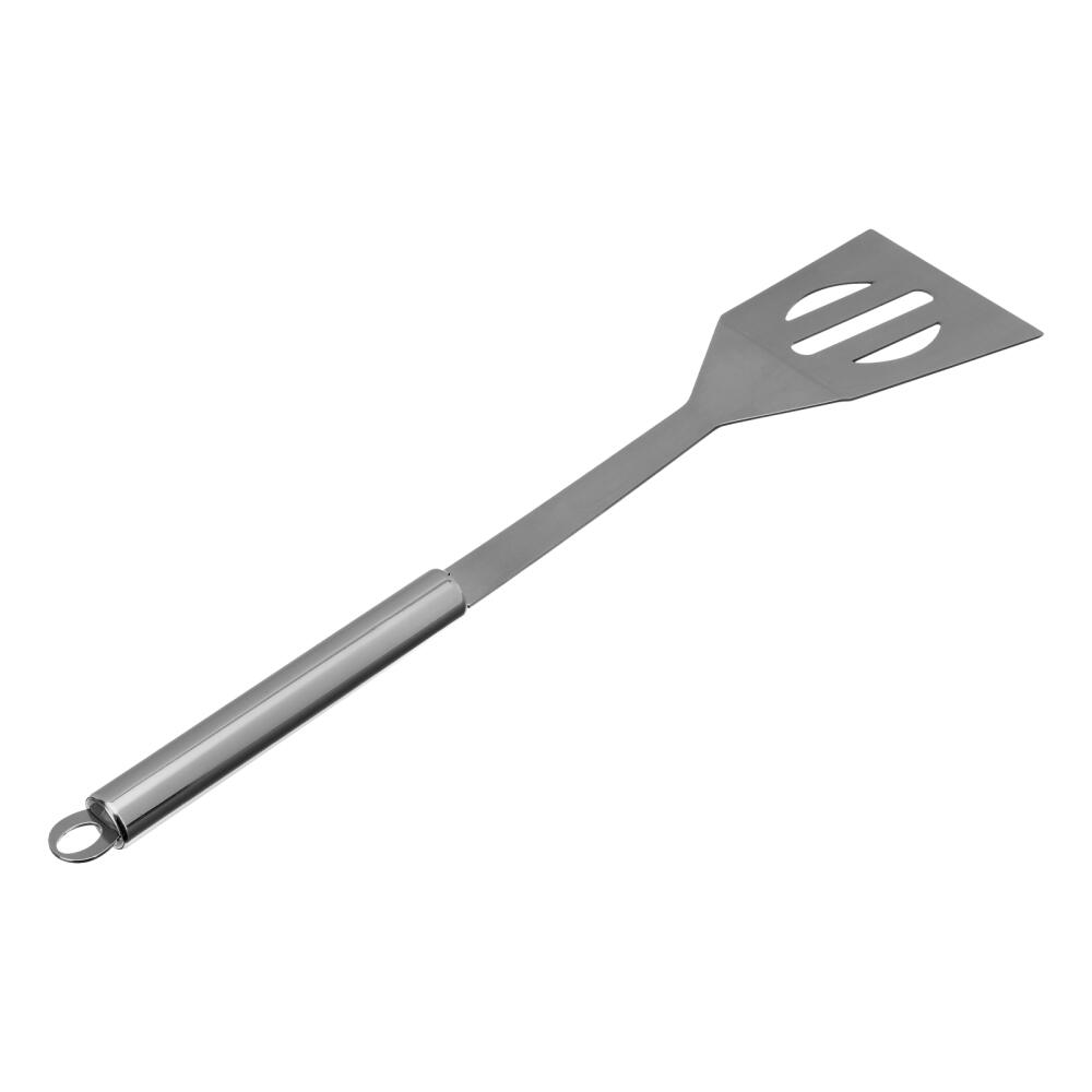 Лопатка для барбекю Palisad Camping 69643 длиной 37 см, из нержавеющей стали, позволяет приготовить мясо, рыбу и овощи на гриле или в мангале. С ее помощью можно удобно и безопасно переворачивать и снимать продукты.