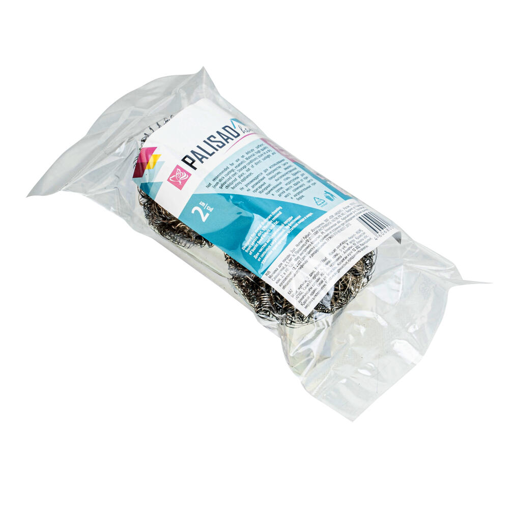 Мочалка для посуды Palisad Home 923715, 2 шт., предназначена для уборки и мытья посуды, в том числе с антипригарным покрытием, эмали и других поверхностей. Она позволяет справиться с въевшимися загрязнениями, ржавчиной и очистить пригоревший жир.