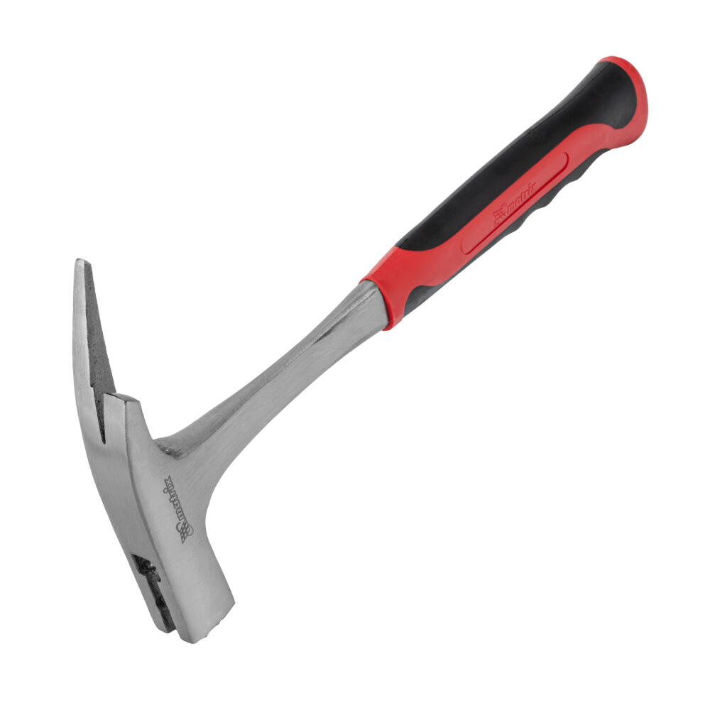Цельнометаллический молоток кровельщика Matrix 10620 с головкой весом 600 г и двухкомпонентной рукояткой — специализированный инструмент для кровельных работ. Насечки на рабочей поверхности бойка предотвращают соскальзывание, если удар по гвоздю нанесен под углом. Противоположная часть головки представляет собой заостренный клин для пробивания отверстий в листовом металле и отгибания кромок. Гвоздодер позволяет вытягивать неправильно забитые гвозди для их выпрямления.