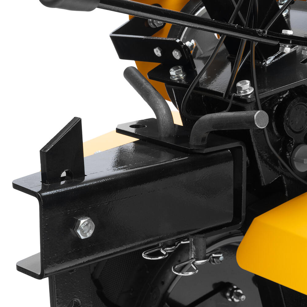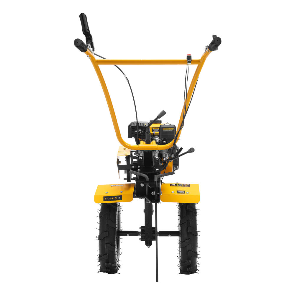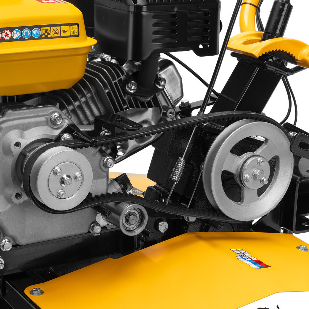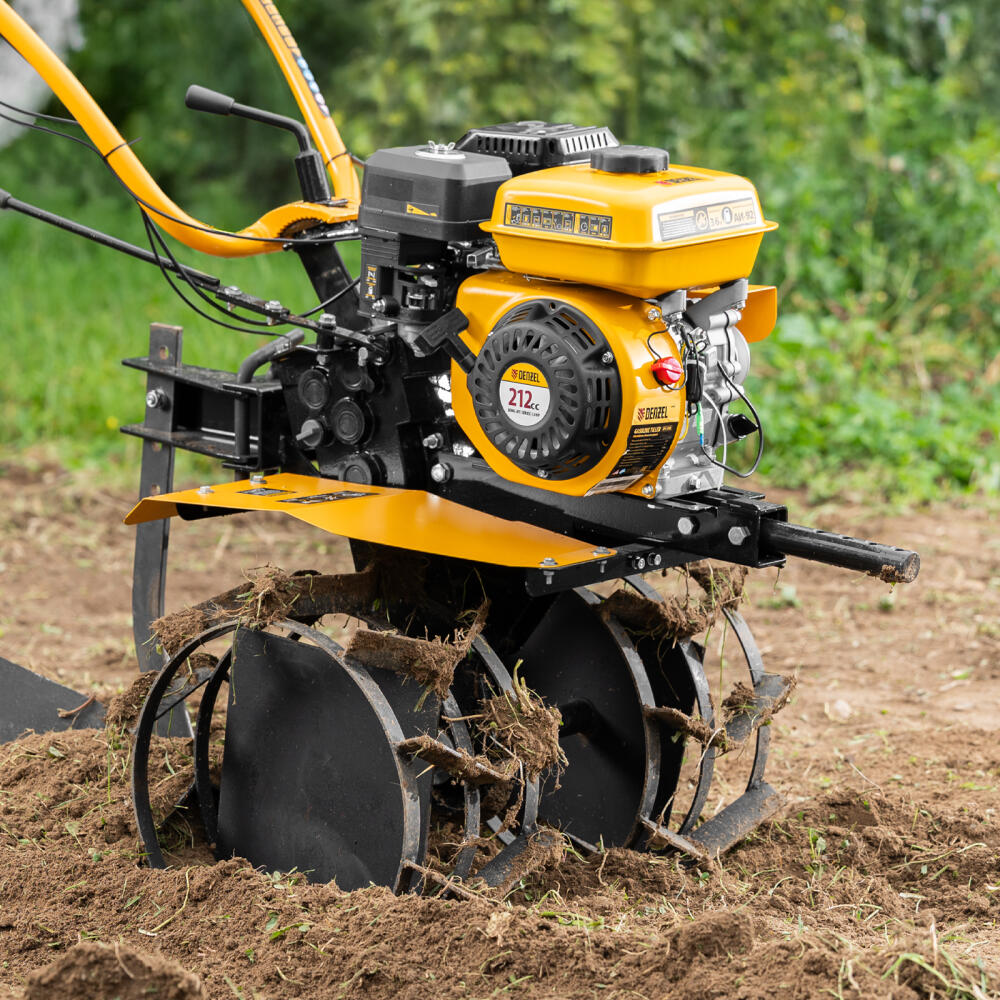Мотоблок Denzel DPT-370S 56443 мощностью 7 л. с., с 24 фрезами (3 х 4 с каждой стороны), шкивом отбора мощности (ШОМ), количеством передач 3 вперед/1 назад, предназначен для рыхления, боронования, выравнивания почвы, прополки и выполнения других сельскохозяйственных работ на огородных и садовых участках при температуре от -15 до +40 ℃. Максимальная ширина обработки достигает 1000 мм, максимальная глубина — 350 мм.