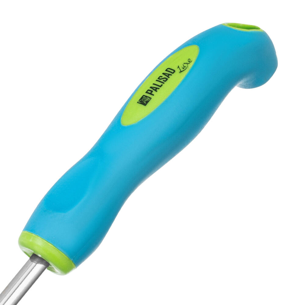 Мотыжка Palisad PREMIUM PLUS 62057, 115 х 320 мм, из нержавеющей стали, с двухкомпонентной рукояткой, будет полезна дачникам для поддержания порядка на участке. За счет острой рабочей кромки ею удобно удалять сорняки и нарезать лунки под посадку семян. Мотыжкой небольшого размера 115 х 320 мм можно работать в условиях ограниченного пространства.