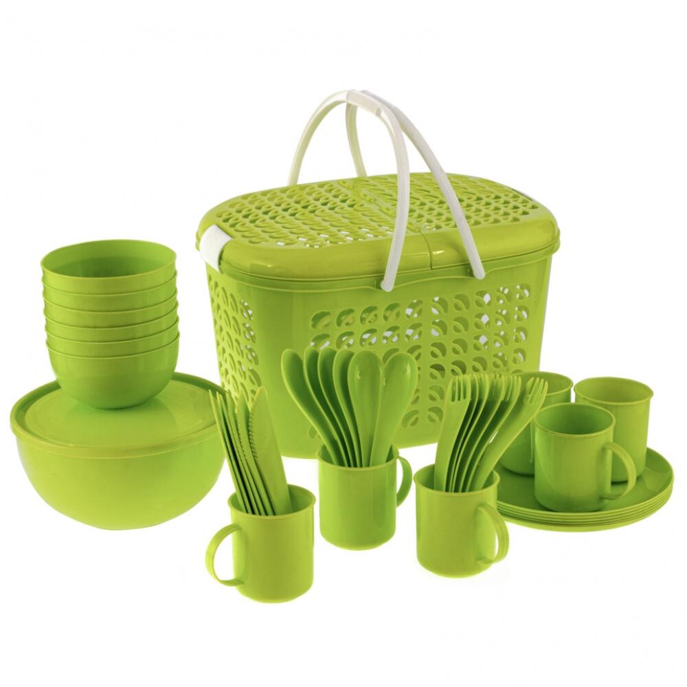 Набор для пикника на 6 персон Palisad Camping 69517 включает 38 предметов. Пригодится на даче, в кемпинге или для любых посиделок на природе. Его удобно хранить в автомобиле, сложив все предметы в корзину, или даже взять с собой в пеший поход.