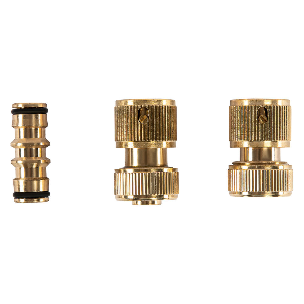 Латунный набор Palisad 66210 предназначен для шлангов диаметром 1/2 дюйма и включает переходник и 2 соединителя, в том числе оснащенный клапаном «аквастоп». Позволяет нарастить шланг и присоединить его к поливочной линии. Используется для монтажа системы орошения на приусадебном участке.
