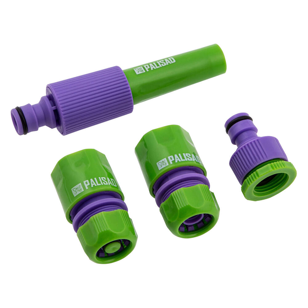 Набор для подключения шланга диаметром 1/2" Palisad 65176 состоит из распылителя и 3 адаптеров к нему. Его используют для полива растений в саду или огороде, а также для очистки сельскохозяйственного инвентаря от загрязнений. Быстросъемные коннекторы позволяют за несколько секунд подсоединять шланг к распылителю и отсоединять от него. Все части набора совместимы с любыми поливочными системами Palisad и Palisad Luxe.