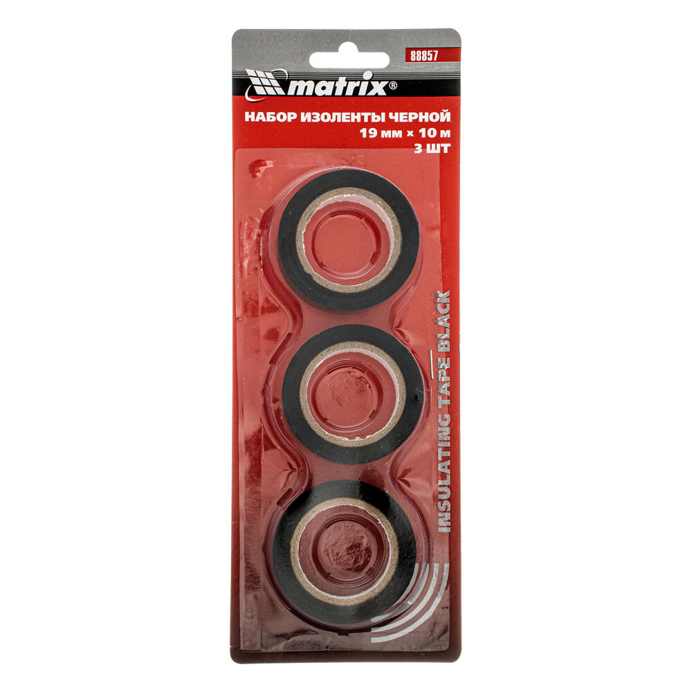 Набор черных изолент из ПВХ Matrix 88857 размером 19 мм x 10 м, толщиной 150 мкм, 3 шт. в упаковке, используется при проведении электромонтажных работ. Универсальные изоленты, сочетающие эластичность и высокую прочность, подходят как для бытового, так и для профессионального применения. С их помощью можно изолировать, соединять и жгутировать провода и кабели, а также маркировать их по цвету.