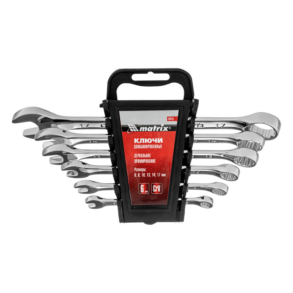 Набор ключей комбинированных, 6-17 мм, 6 шт, CrV, полированный хром Matrix