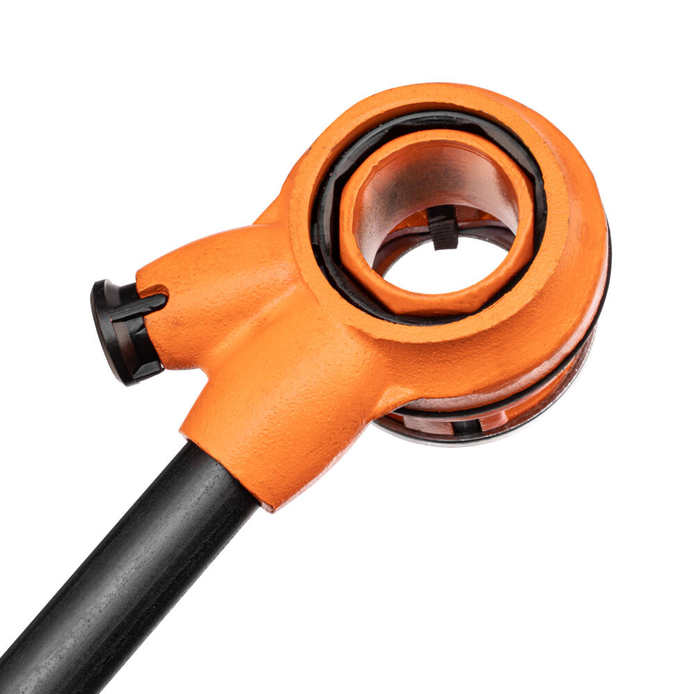 Набор Sparta 773355 включает в себя 9 предметов: клуппы наиболее востребованных размеров 1/4″, 3/8″, 1/2″, 3/4″, 1″ и 1 1/4″, а также плашкодержатель с трещоткой и удлинителем. Пригодится частному мастеру для нарезания внешней резьбы на новых трубах или ремонта старых. Плашкодержатель оснащен трещоточным механизмом, который наиболее эффективно передает рабочее усилие, а также позволяет работать в труднодоступных местах.