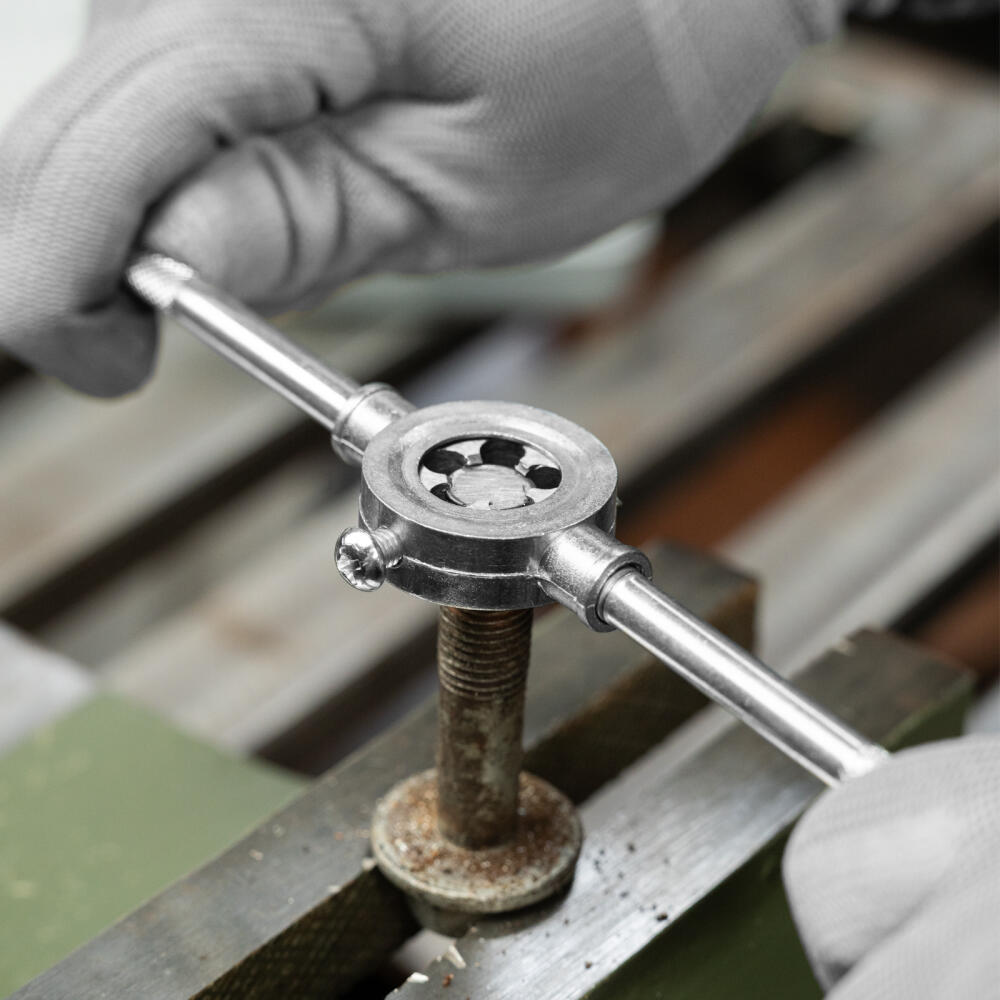 Набор метчиков и плашек М3-М12 Sparta 773105 из 20 предметов, с плашко- и метчикодержателем, в пластиковом боксе, используется для нарезания внешней и внутренней резьбы разного размера. Позволяет работать как с глухими, так и со сквозными отверстиями. Набор будет полезен во время выполнения ремонтных работ, подойдет для домашнего применения.