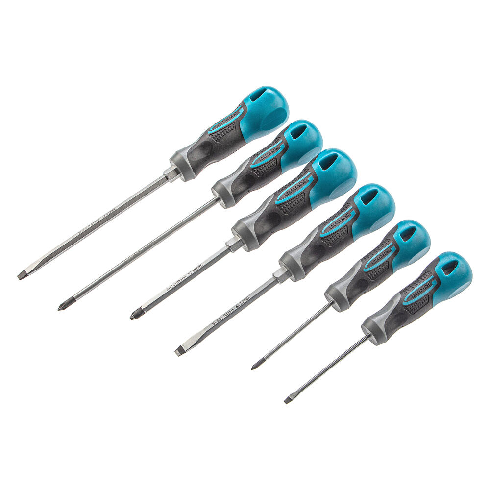 Набор из 6 отверток Gross 12164 из стали S2, с трехкомпонентными рукоятками, предназначен для монтажа и демонтажа крепежных элементов с профилем SL и PH. Высококачественные отвертки рассчитаны на повышенные нагрузки, поэтому подходят для бытового и профессионального использования. 6 отверток со стержнями длиной 75-150 мм позволяют работать с крепежом на поверхности и в углублениях.