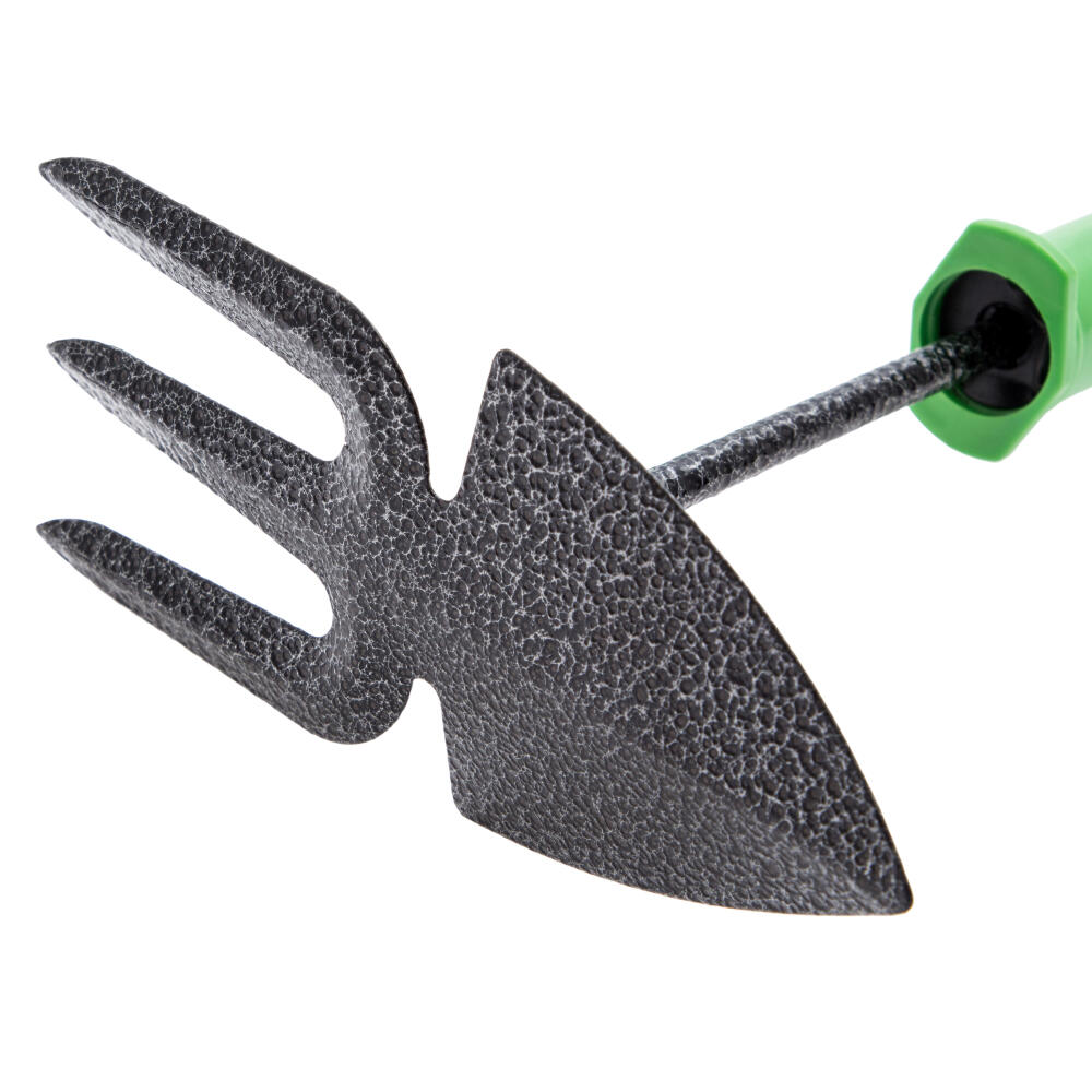 Набор садового инструмента Palisad STANDARD 62905 состоит из 4 предметов — комбинированной мотыжки, совка и рыхлителя с пластиковыми рукоятками, а также коврика под колени. Инструменты изготовлены из среднеуглеродистой стали и покрыты молотковой эмалью для защиты от коррозии, поэтому они характеризуются прочностью и долговечностью. Коврик устойчив к воздействию ультрафиолета и влаги, поэтому прослужит долго. Набор пригодится любителям садоводства и огородничества.