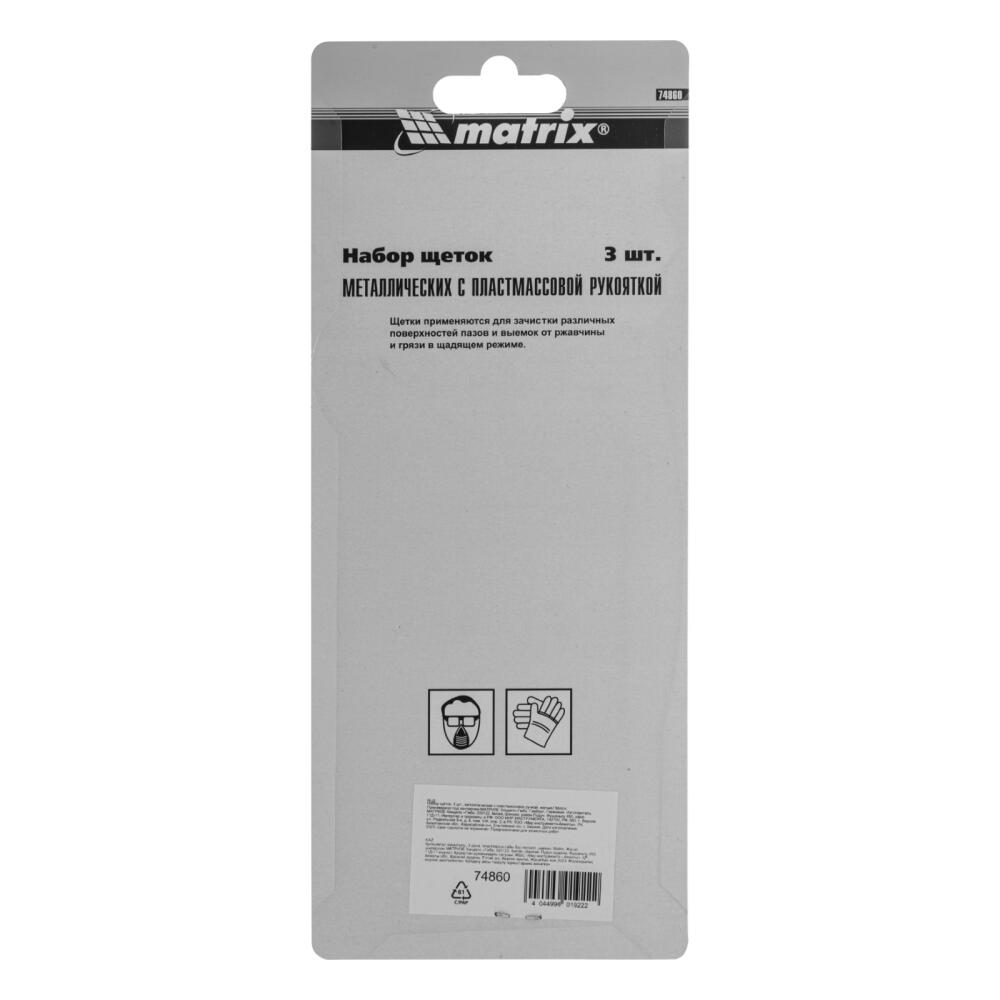Набор малых щеток Matrix 74860 с пластмассовыми ручками предназначен для различных видов обработки — стальные удаляют ржавчину, загрязнения и старую краску с металлических и других поверхностей, а нейлоновая браширует и мягко очищает деревянные изделия. Щетки имеют удлиненные ручки, а длина рабочих частей составляет 34 мм, поэтому они оптимальны для работы на небольших участках и в труднодоступных местах. Набор пригодится во время проведения ремонта, кузовных работ, а также будет полезен в быту.