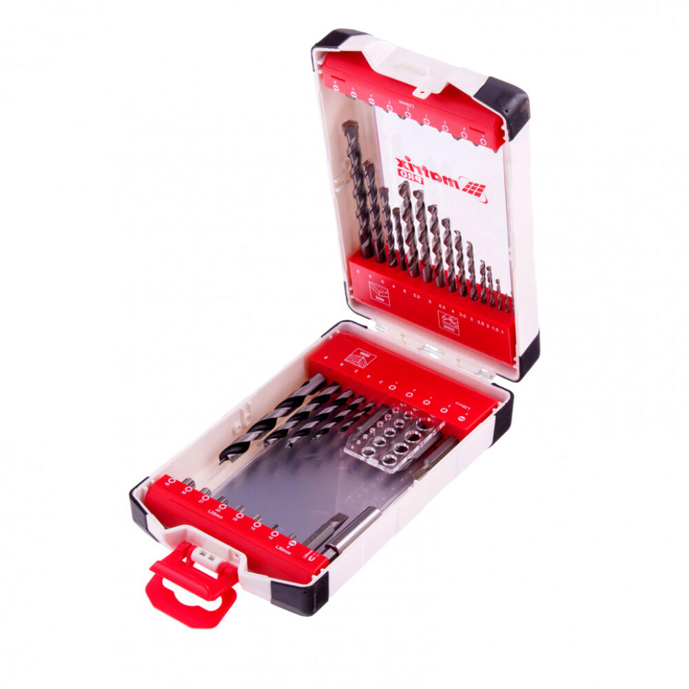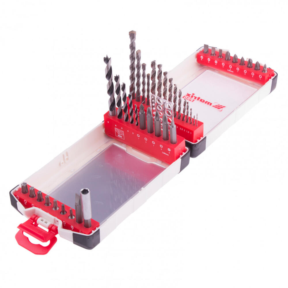 Комбинированный набор Matrix 725644 — универсальное решение для мастеров, т. к. он содержит 44 предмета: отверточные биты (22 шт.) и адаптер к ним, калибровочную шкалу и сверла по дереву 3-8 мм, сверла по бетону 4-8 мм и сверла по металлу 1-6 мм. Оснастка подходит как для бытового использования, так и решения профессиональных задач.