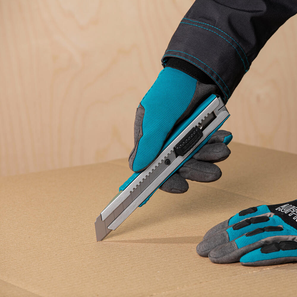Нож Gross 78896 из стали SK-5, длиной 195 мм, в металлическом корпусе, с выдвижным сегментным лезвием шириной 25 мм, металлической направляющей и клипсой для ремня, — профессиональный инструмент, предназначенный для разрезания линолеума, картона, кожи, обоев и других материалов. Используется при проведении ремонтных и отделочных работ, будет полезен в хозяйстве.
