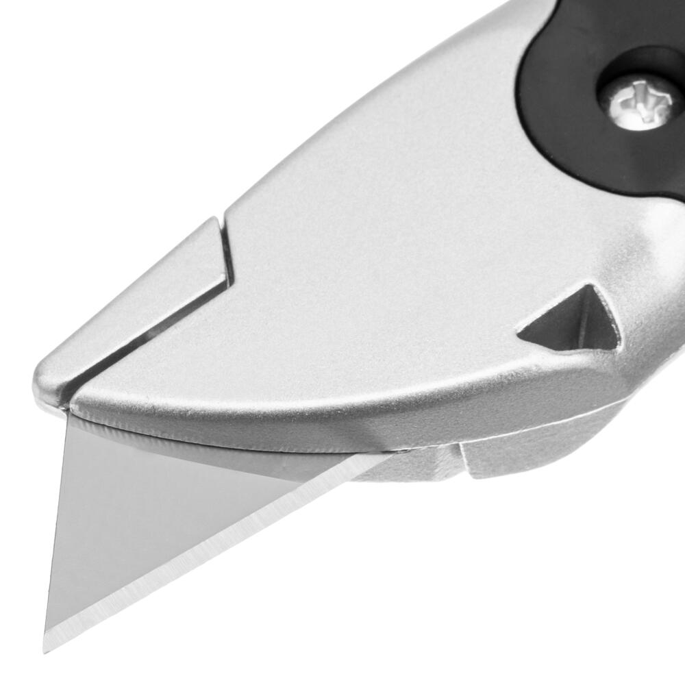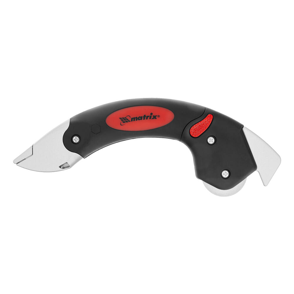 Нож Matrix 78979 предназначен для резки напольных покрытий, таких как линолеум или ковролин, а также мягкой кровли. Алюминиевый направляющий ролик в хвостовой части инструмента позволяет работать быстро и без потери точности. Лезвие не отклоняется от линии реза, т.к. надежно удерживается алюминиевым держателем с магнитной вставкой. Нож пригодится во время проведения ремонтных или кровельных работ, также будет полезен в быту.