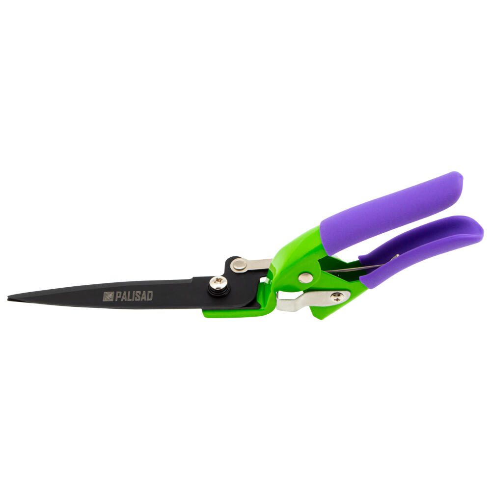Газонные ножницы Palisad 60573 длиной 310 мм, с металлическими обрезиненными рукоятками, предназначены для стрижки травы вдоль бордюров, дорожек, ограждений, возле кустов. Режущие части закалены и остро заточены, поэтому инструмент полностью готов к работе. Тефлоновое покрытие защищает лезвия от коррозии и предотвращает налипание на них травяного сока, грязи и пыли. Механизм самооткрывания предотвращает заедание лезвий при стрижке жесткой травы. Ножницы пригодятся владельцам дачных участков.