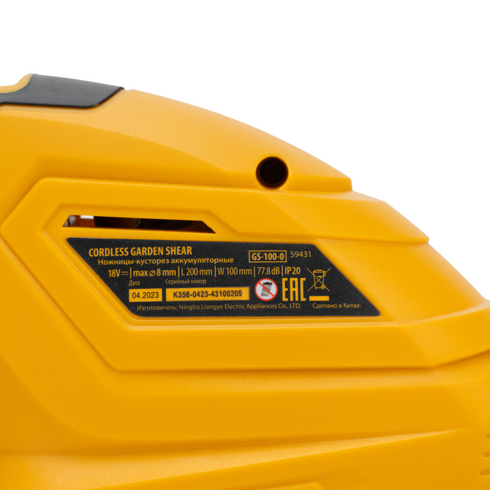 Ножницы-кусторез не зависят от сети электропитания, а значит, использовать их можно в отдаленных участках сада. Инструмент совместим с любым Li-Ion аккумулятором единой платформы Denzel Battery System 18V.