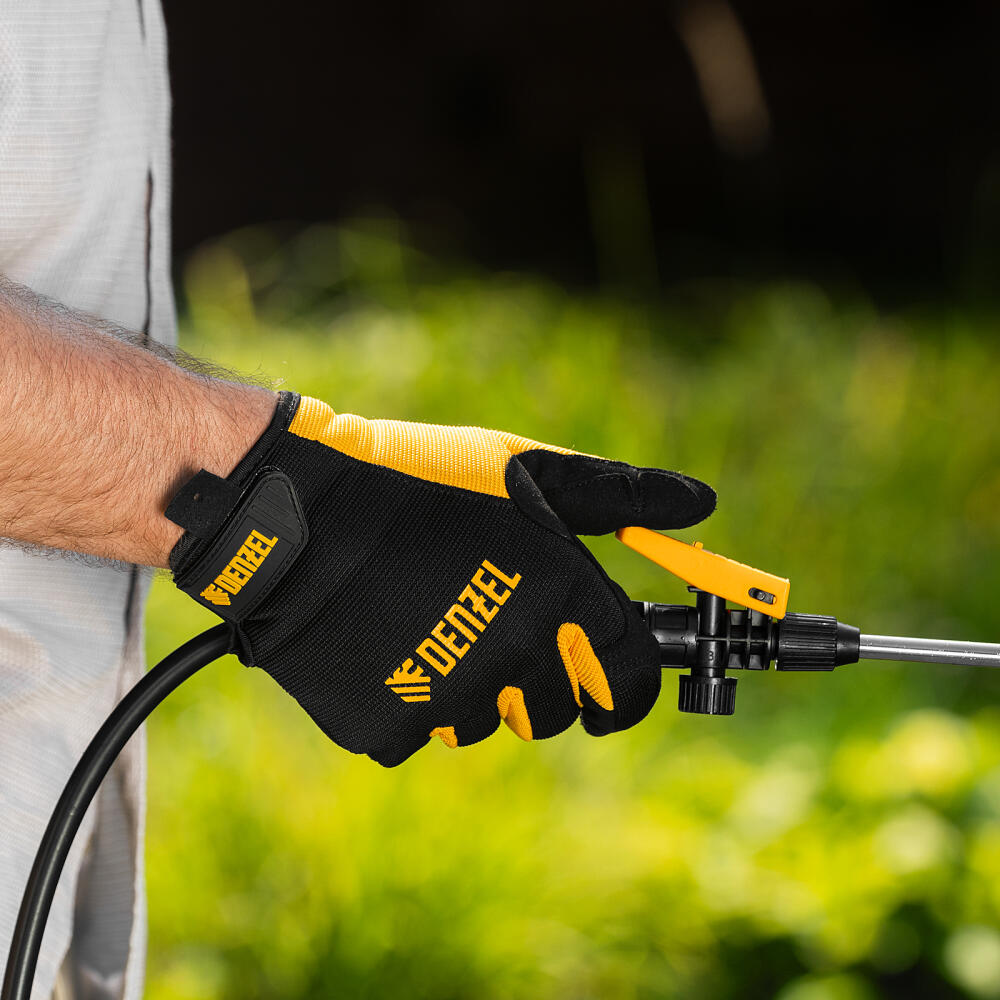 Аккумуляторный опрыскиватель Denzel D-8LI 64795 с баком объемом 8 л и Li-Ion батареей на 12 В, емкостью 2 А·ч, используется для ухода за растениями, а также для распыления инсектицидных жидкостей, дезинфекции помещений, мытья окон, стен и дорожек. Длина штанги регулируется в диапазоне 380-630 мм, а максимальная дальность распыления составляет 4 м, что позволяет обрабатывать участки большой площади и труднодоступные места. Опрыскиватель экономит силы и время пользователя, будет полезен в быту и на производстве.