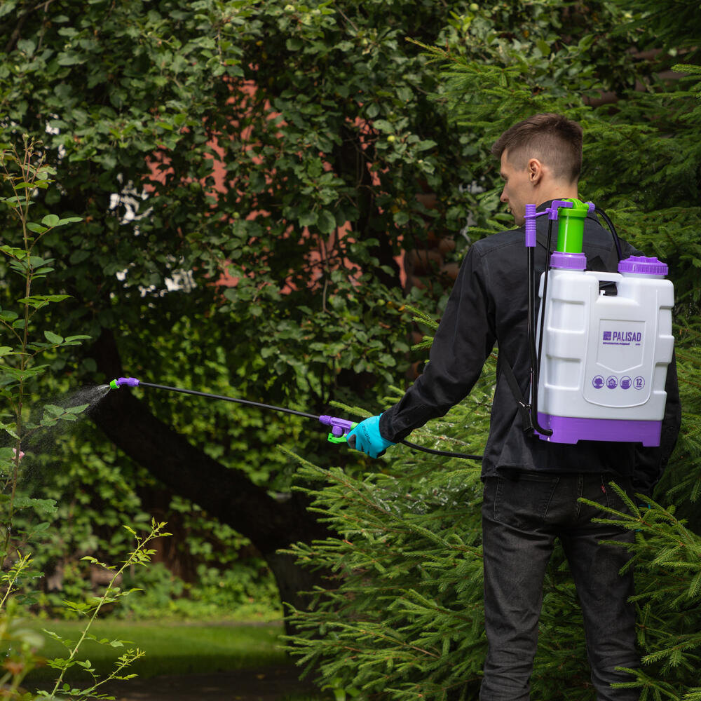Ранцевый опрыскиватель Palisad 64784 с баком объемом 12 л, насосом, шлангом и разбрызгивателем, используется для распыления удобрений и пестицидов на садово-огородные культуры. Резервуар вмещает 12 л жидкости, поэтому на одной заправке можно обработать участок большой площади. Широкая горловина позволяет заливать раствор без риска разбрызгивания. Устройство удобно как для правшей, так и для левшей.