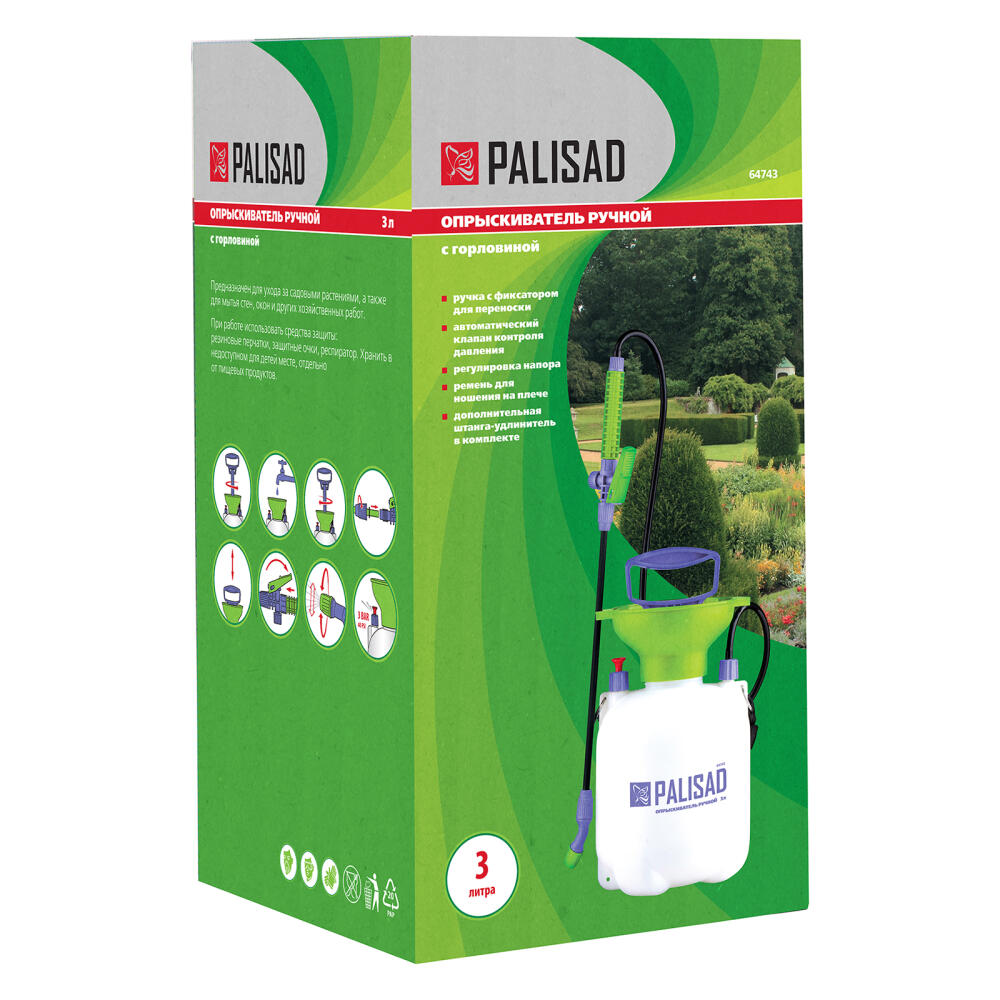 Ручной опрыскиватель Palisad 64743 с баком объемом 3 л, горловиной, насосом, шлангом и разбрызгивателем, используется для ухода за растениями на грядках, клумбах и в теплицах. Устройство предназначено для распыления пестицидов и внесения удобрений. Широкое заливочное горло позволяет быстро наполнить емкость раствором. Ремень для ношения на плече позволяет освободить руки для более комфортной работы.