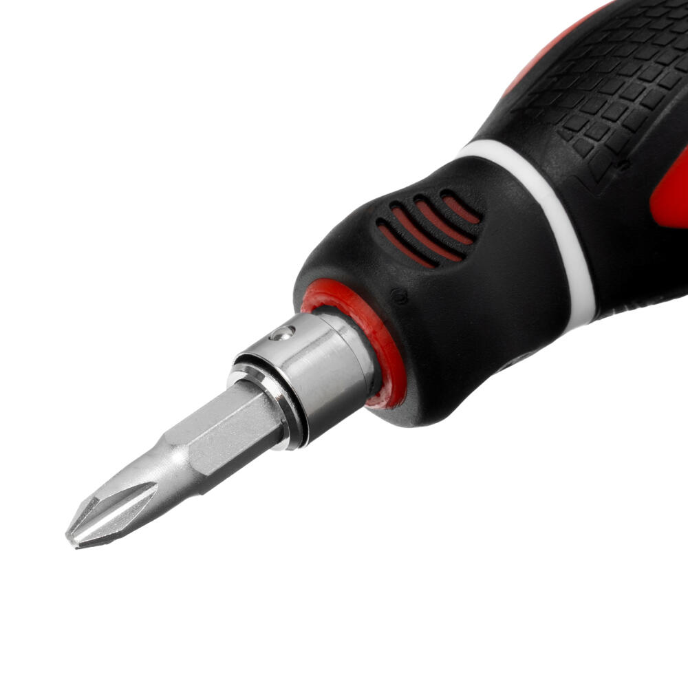 Комбинированная отвертка Matrix 11581 из стали CrV, с двухкомпонентной рукояткой и стержнем длиной 38 мм, позволяет монтировать и демонтировать крепеж типоразмера SL6,0 и PH2. Она рассчитана на профессиональное использование, в частности, осуществление строительных и монтажных работ. Благодаря длине стержня 38 мм и укороченной рукоятке можно производить работы в ограниченном пространстве.