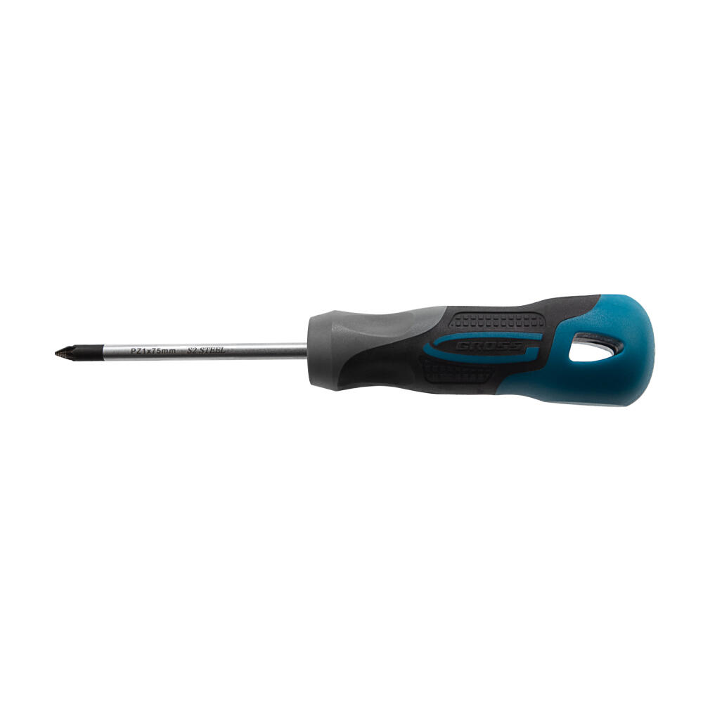 Отвертка Gross 12156, PZ1 x 75 мм, из стали S2, с трехкомпонентной рукояткой, пригодится для монтажа и демонтажа крепежных элементов типа Pozidriv. Крестовой шлиц с 4 дополнительными насечками не проскальзывает в головке крепежа, что обеспечивает высокую точность работы. Отвертка выдерживает интенсивные нагрузки и рассчитана на профессиональное использование.