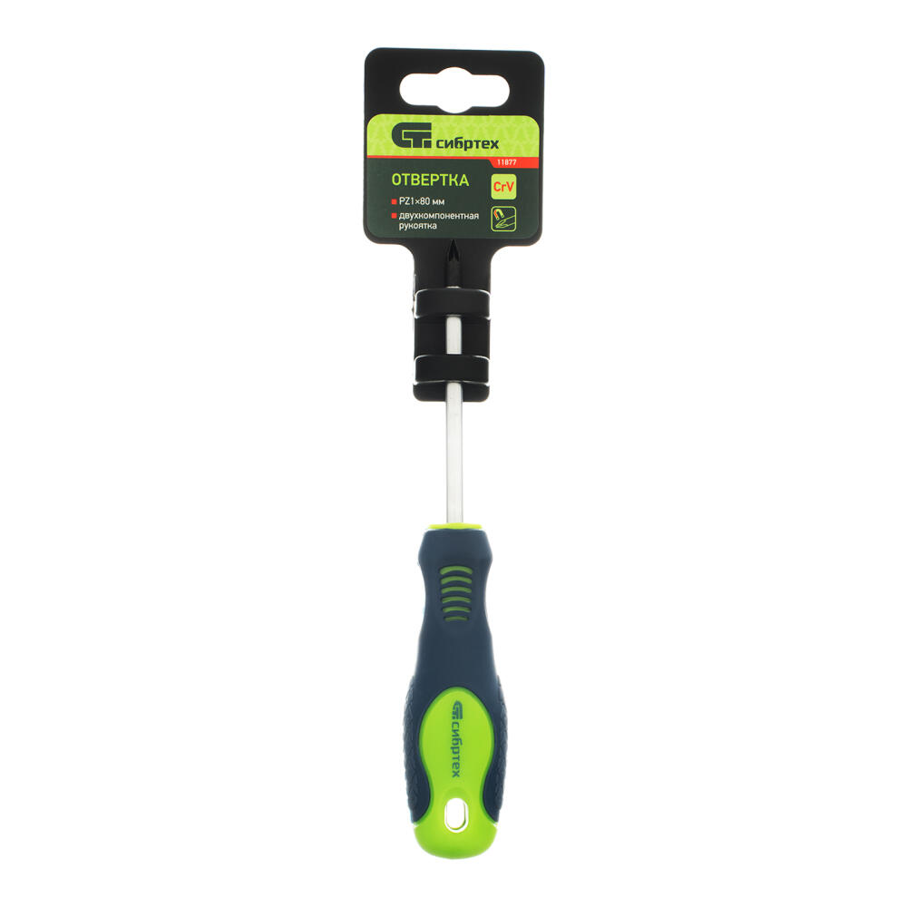 Отвертка Сибртех 11877, PZ1 х 80 мм, из стали CrV, с 2-х компонентной рукояткой, оснащена крестовым шлицем с 4 дополнительными насечками для лучшего сцепления с крепежом. Она подходит для монтажа/демонтажа крепежных элементов типа Pozidriv. Отвертка полупрофессионального класса поможет при сборке мебели, установке полок и т.д. Стержнем длиной 80 мм удобно работать на поверхностях и в углублениях.