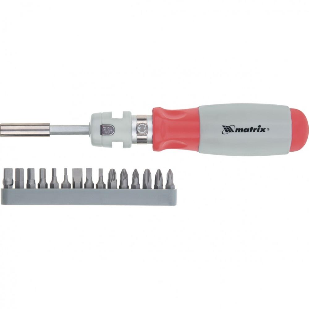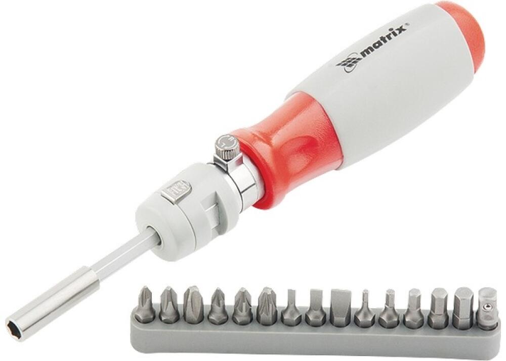 Отвертка реверсивная телескопическая Matrix 11552 из стали CrV, с силовым элементом под ключ и набором из 15 бит, предназначена для проведения монтажных и демонтажных работ с резьбовым крепежом. Реверсивный механизм позволяет вращать отвертку, не перехватывая рукоятку, что упрощает и ускоряет работу. Телескопическая конструкция облегчает работу в труднодоступных местах. Отвертка пригодится для решения бытовых и профессиональных задач.