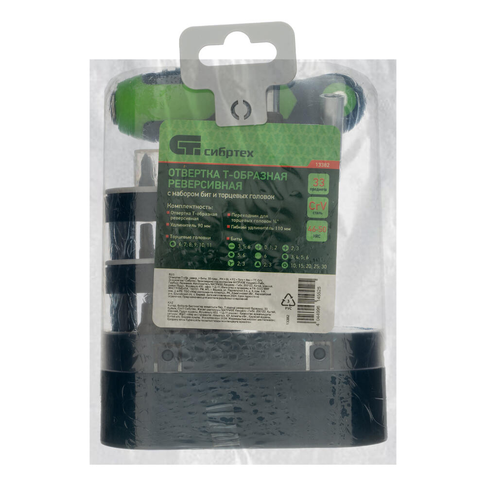 Т-образная реверсивная отвертка с набором бит и торцевых головок Сибртех 13382 входит в комплект из 33 предметов, выполненных из стали CrV. Инструменты предназначены для монтажа/демонтажа резьбовых соединений в условиях ограниченного пространства, где обычную отвертку использовать затруднительно. Набор включает биты для крепежа с профилем SL, PH, PZ, TR, TT, TW, TA, HEX, SPAN и торцевые головки для болтовых соединений.