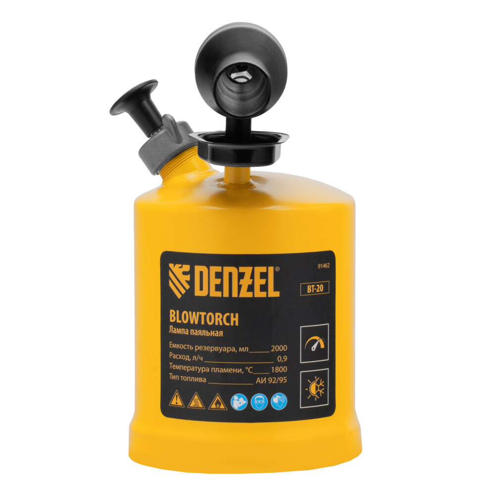 Паяльная лампа Denzel BT-20 91462 с баком объемом 2 л предназначена для нагрева поверхностей при помощи открытого направленного пламени. Полной заправки (1,5 л топлива) хватает больше чем на час работы при расходе 0,9 л/ч. Воздушный насос и форсунка высокого давления обеспечивают эффективную подачу топлива к эжектору. Лампа стабильно работает даже в ветреную погоду. Используется при выполнении ремонтных и демонтажных работ: пайки, сварки, ослаблении заклинивших резьбовых соединений, опаливании древесины, снятии лакокрасочных покрытий и других термических работ. Пригодится для обогрева двигателя. Также будет полезна в сельском хозяйстве и в быту.