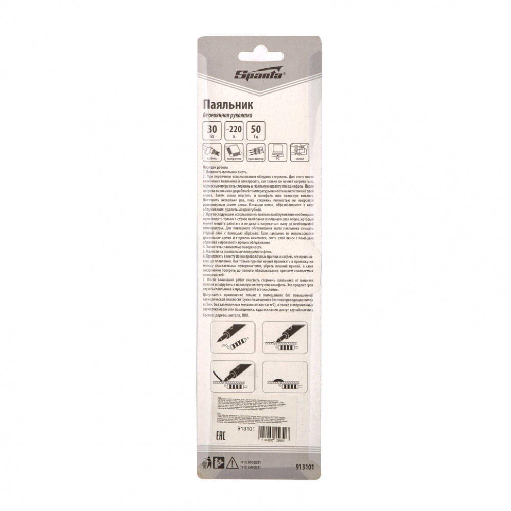 Паяльник Sparta 913101 мощностью 30 Вт, с ручкой из дерева, питается от сети 220 В и используется для пайки электропроводки, микрочипов, электрических схем и транзисторов. Нагревательным элементом является нихромовая спираль, что уменьшает вероятность поломки прибора в результате падения или удара. Конусовидный наконечник позволяет успешно решать поставленные задачи. Защитное покрытие улучшает прилипание припоя и защищает наконечник от коррозии. Паяльник пригодится для ремонта электроники, бытовой техники, а также обслуживания автомобилей и проведения электромонтажных работ.