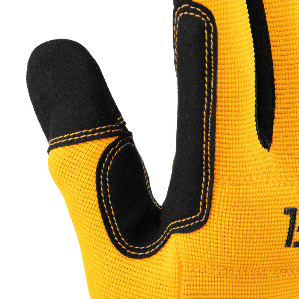 Универсальные перчатки Denzel 67996 размера 9 используются для защиты кожи рук от повреждений во время работы с ручным инструментом. Анатомический крой обеспечивает плотную посадку и свободные движения пальцев. Перчатки будут полезны в слесарной и столярной мастерской, дома или в гараже.