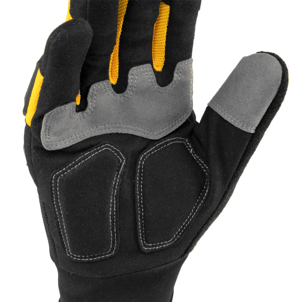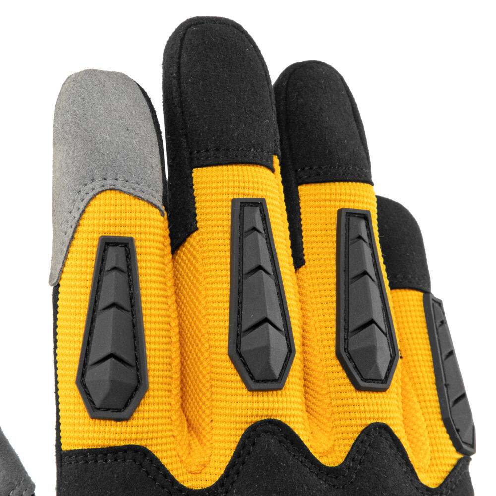 Универсальные усиленные перчатки Denzel 68003 размера 10, с защитными накладками, предотвращают появление царапин и мозолей во время работы с ручным инструментом. Анатомически скроенные, они плотно облегают кисти рук, не сковывая движения пальцев. Перчатки используются при выполнении строительных, ремонтных, слесарных и столярных работ.