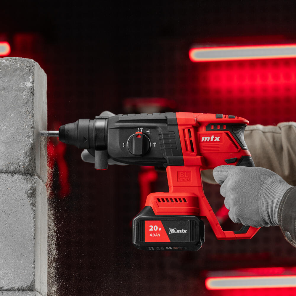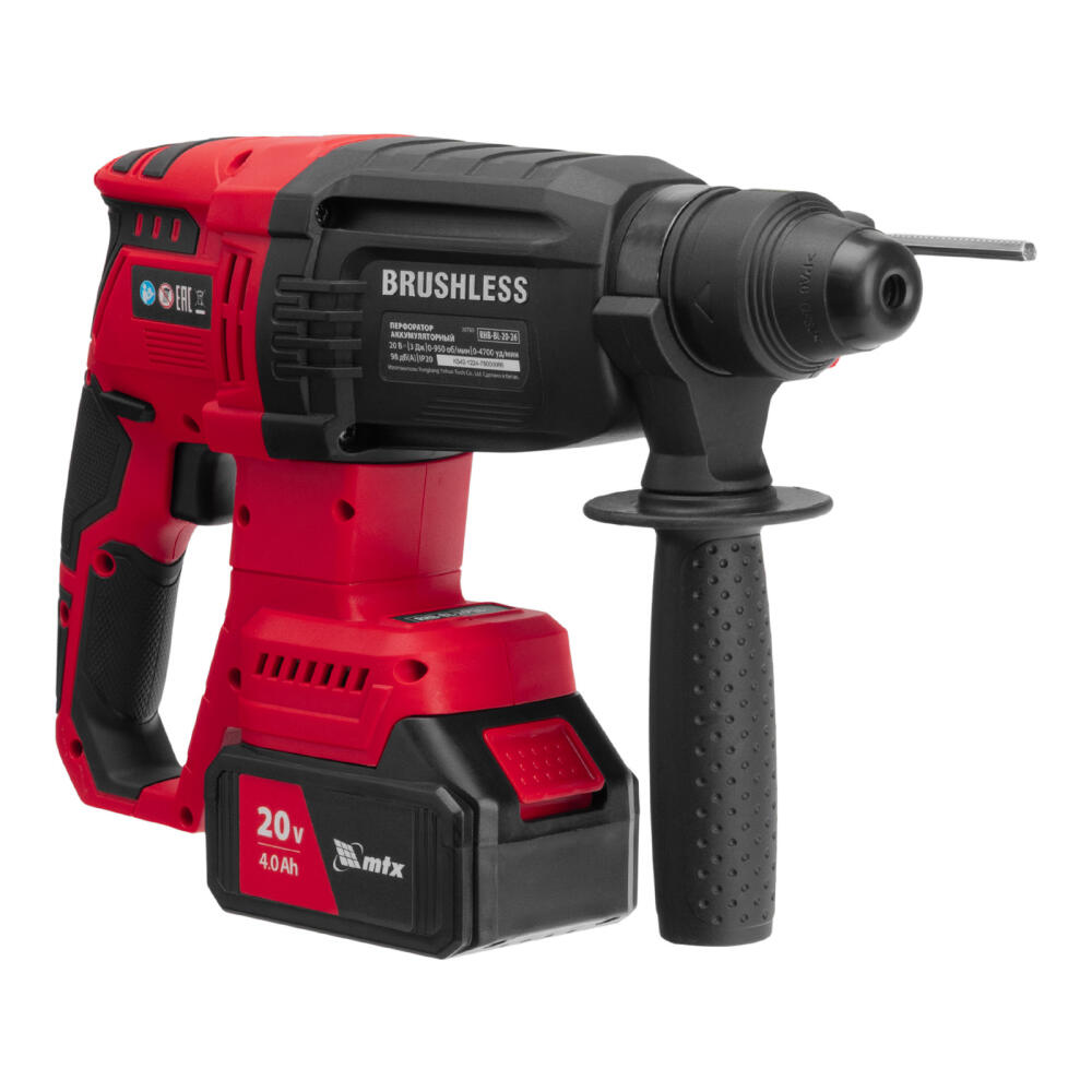 Аккумуляторный перфоратор MTX RHB-BL-20-26 26780 с бесщеточным двигателем работает от батареи Li-Ion 20 В и развивает энергию удара 3 Дж. Позволяет сверлить различные материалы, бурить отверстия, штробить и пробивать борозды в бетоне, камне, кирпиче, разрушать кирпичную кладку. Мощный бесщеточный двигатель устойчив к высоким нагрузкам и обеспечивает силу удара, достаточную для эффективной работы с материалами высокой твердости. Максимальный диаметр сверления в бетоне достигает 26 мм, древесине — 30 мм, металле — 10 мм. Патрон совместим с оснасткой SDS Plus, которая надежно фиксируется и не проворачивается во время работы. Перфоратор позволяет успешно решать большинство задач в быту.