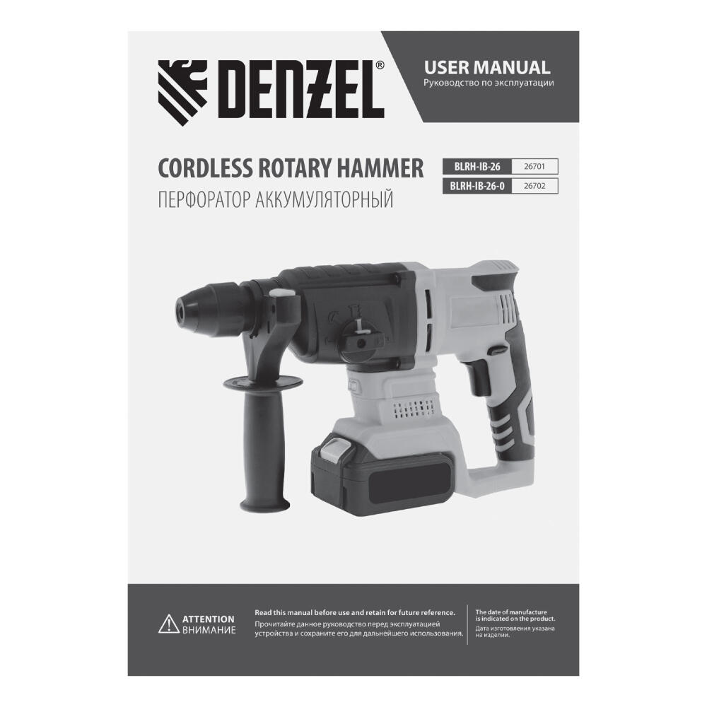 Аккумуляторный перфоратор Denzel BLRH-IB-26-0 26702 питается от аккумулятора Li-Ion увеличенной емкости с рабочим напряжением 18 В (не входит в комплект поставки). Предназначен для сверления отверстий в различных материалах, а также для штробления стен и разрушения кирпичной кладки. Предусмотрено 4 режима работы: сверление, бурение, долбление + регулировка положения долота (опция Vario Lock). Максимальный диаметр отверстий в древесине составляет 40 мм, металле — 13 мм, бетоне — 26 мм.,Инструмент совершает до 4800 ударов в минуту, развивая энергию до 3 Дж, чем обусловлена его высокая производительность и эффективная работа с твердыми материалами. Перфоратор пригодится для проведения строительных и ремонтных работ. В комплект поставки входит дополнительная рукоятка и ограничитель глубины сверления.