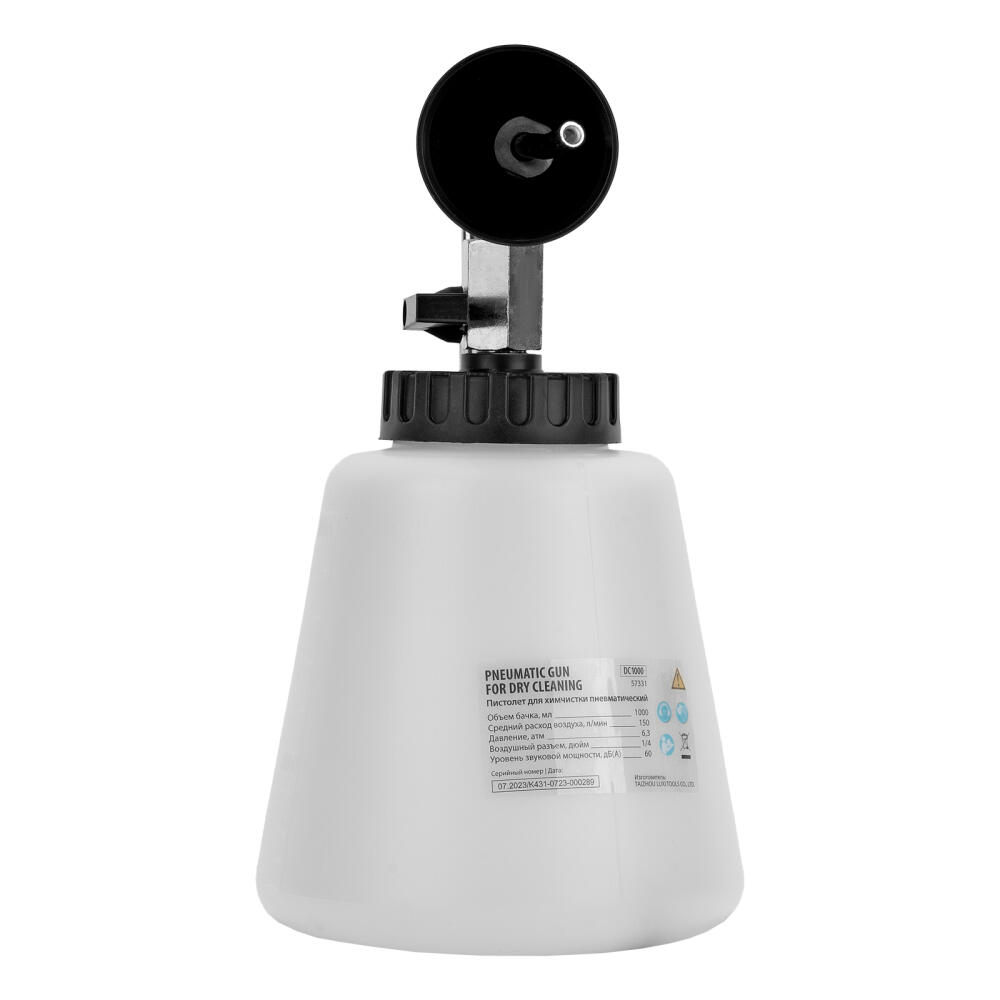 Пневматический пистолет для химчистки Denzel DC1000 57331 предназначен для очищения различных поверхностей: велюра, ткани, пластика, винила и т.д. Поможет удалить загрязнения с обивки сидений в салоне автомобиля, дверных порогов, приборной панели, удобен для обработки труднодоступных мест. Инструмент подходит для сухой и влажной чистки. Частота вращения форсунки составляет 6000 об/мин, что позволяет успешно решать поставленные задачи.