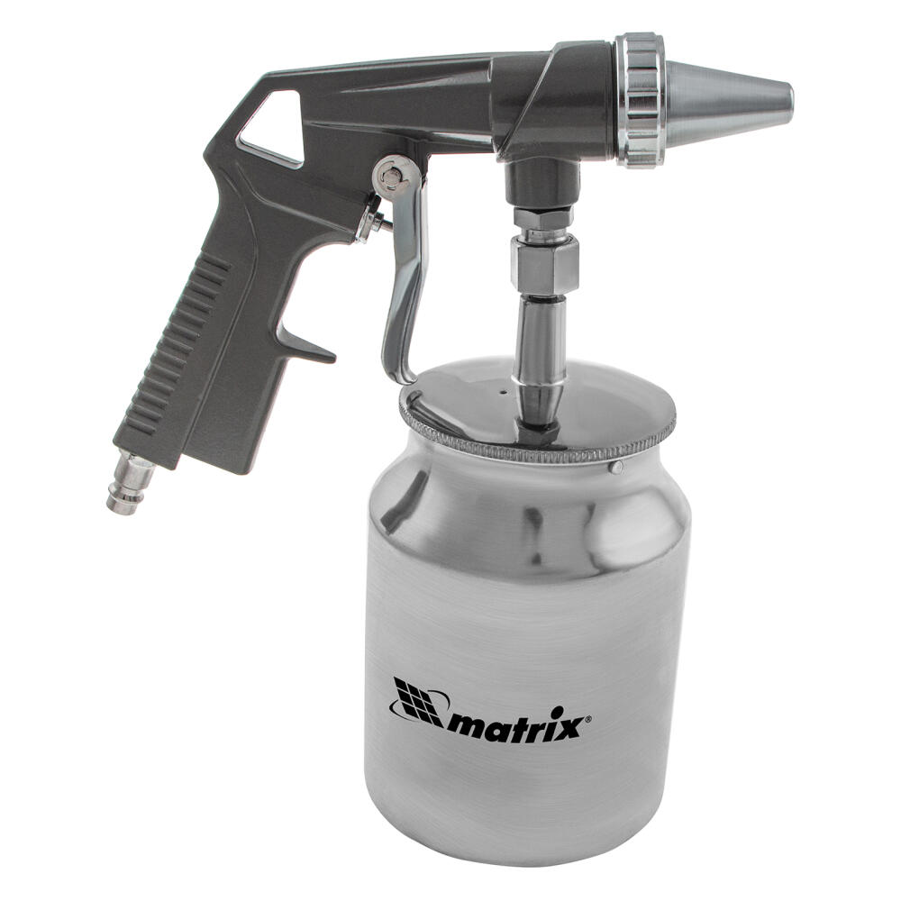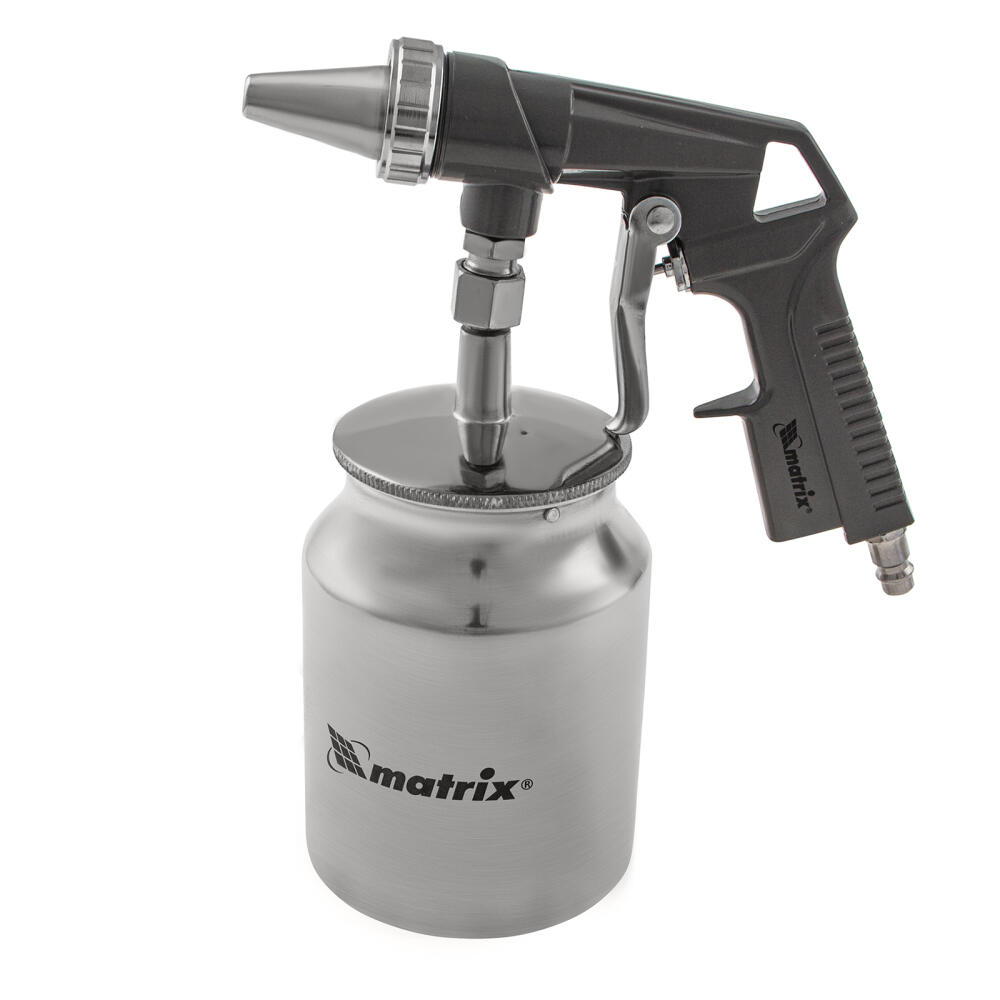 Пескоструйный пистолет Matrix 57326 используется для очищения загрязненных поверхностей, удаления краски, очагов коррозии и ржавчины с помощью кварцевого песка или специального абразива размером до 1,6 мм. Встроенный бачок для песка объемом 1000 мл делает пистолет мобильным и избавляет мастера от необходимости присоединять дополнительный шланг.